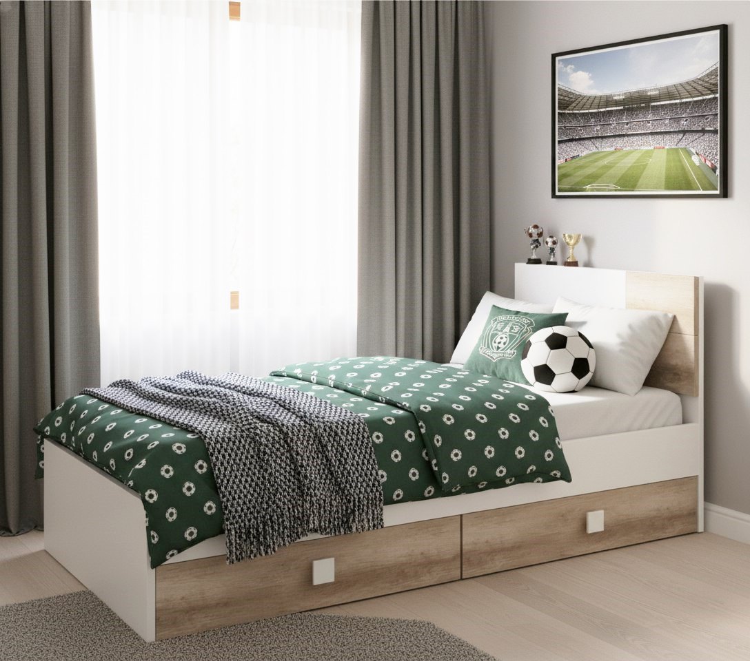 Прочные выдвижные ящики кровати изготовлены с применением метабоксов, что делает изделие надежным и практичным.