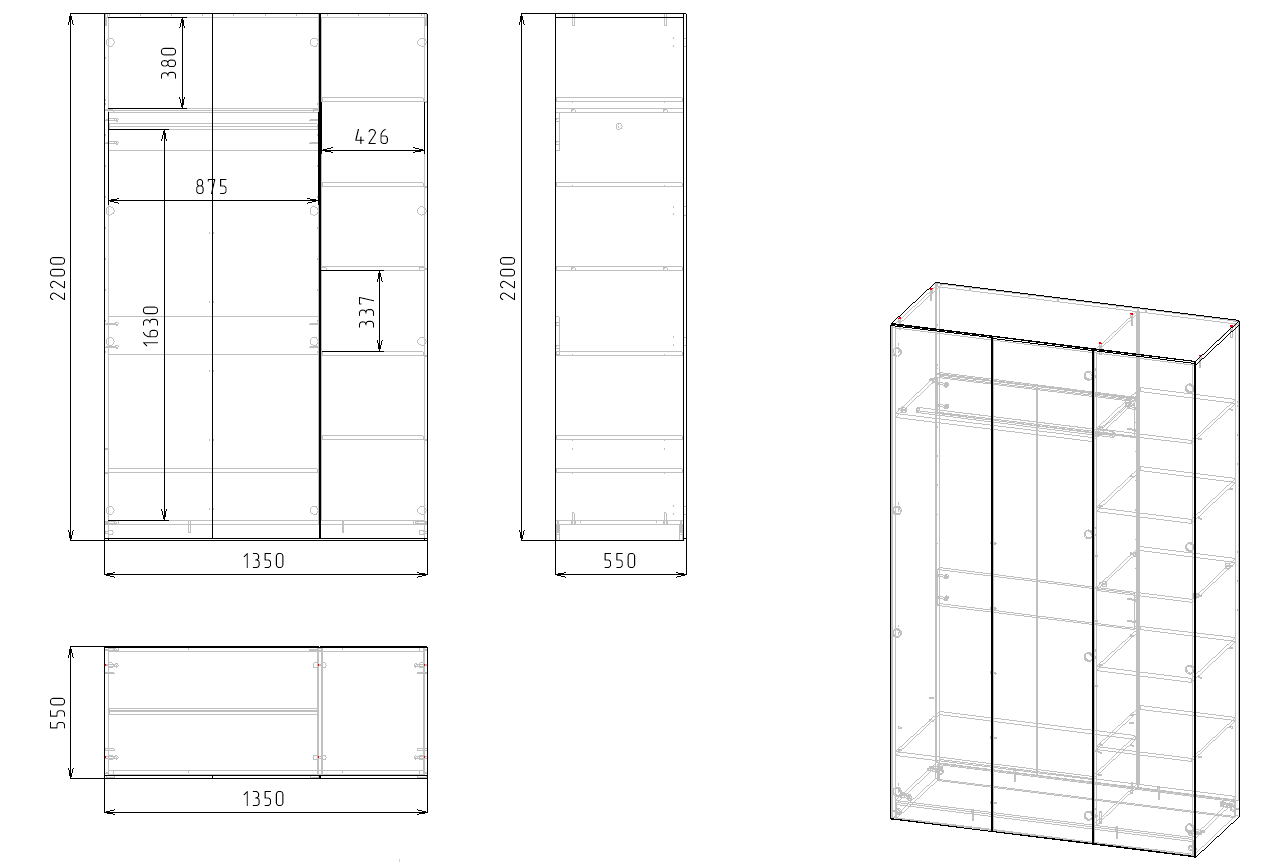Трехдверный распашной шкаф - функциональное решение для хранения одежды, обуви и аксессуаров.
