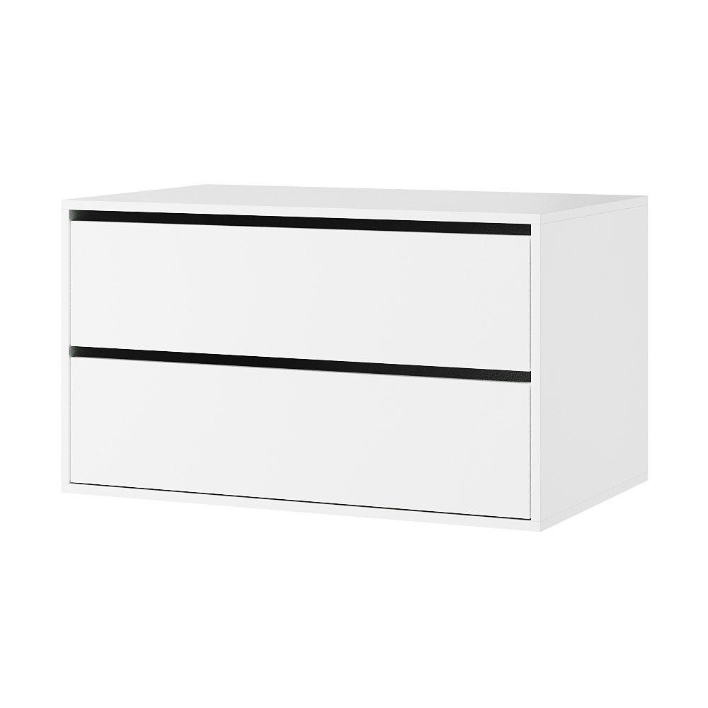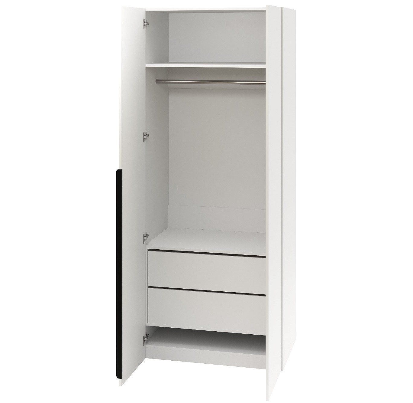 Внутри шкафа расположены вместительный ящик с двумя отделениями, штанга, верхняя и нижняя полки.