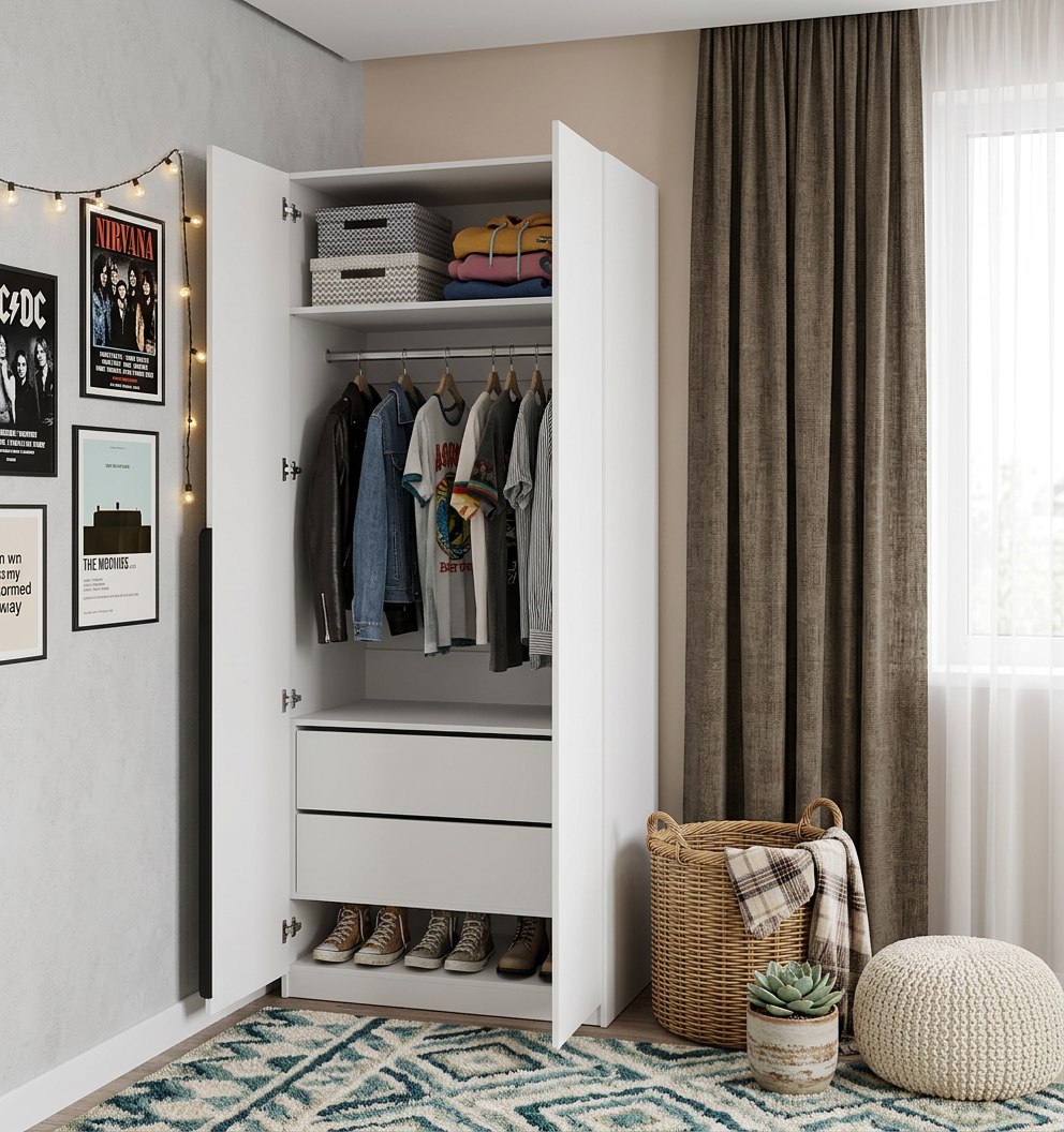 Двухстворчатый распашной шкаф коллекции мебели Брайт - удобный и функциональный шкаф для хранения вещей.