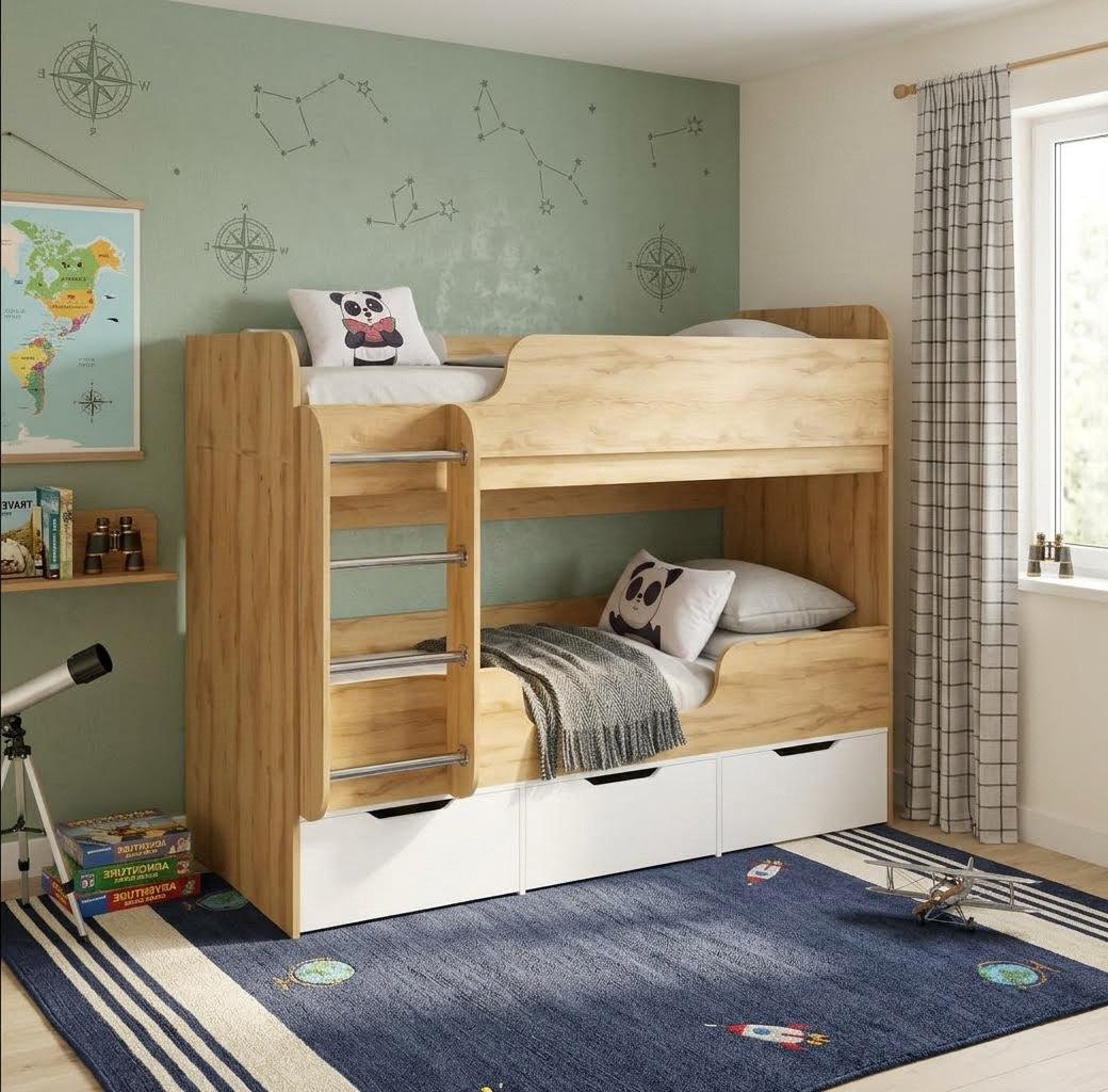 Компактная двухъярусная кровать Малыши Двойняшки создана специально для небольших помещений.