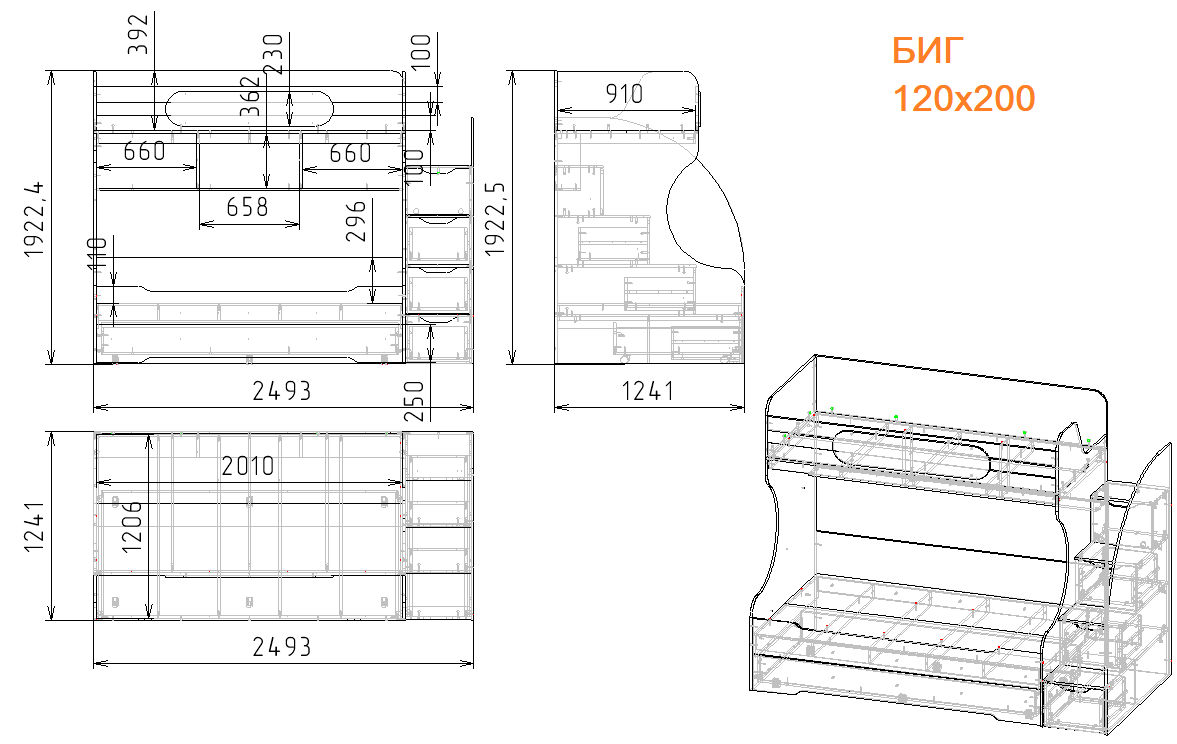 Просторная двухъярусная кровать БИГ с дополнительным третьим спальным местом