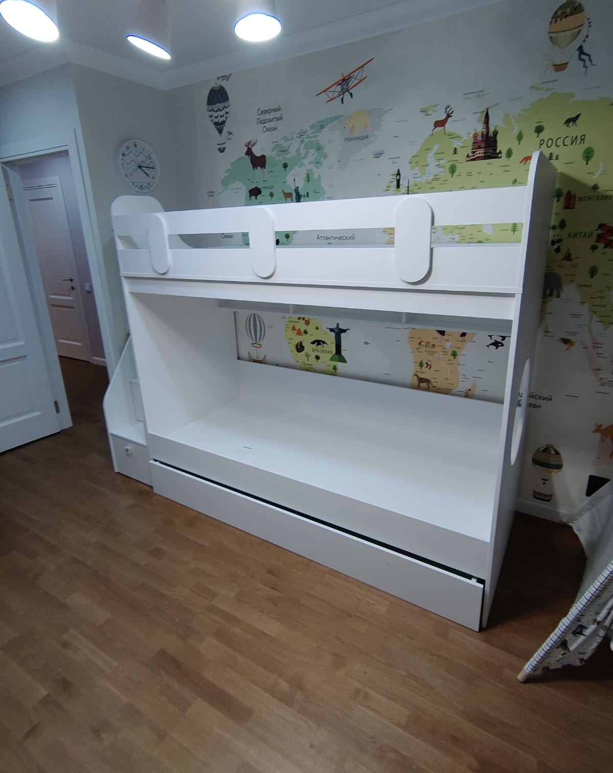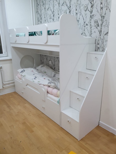 Вместо них - цельный и прочный настил из ЛДСП, который выдерживает сверхвысокую нагрузку и позволяет расположиться даже взрослому с ребенком.