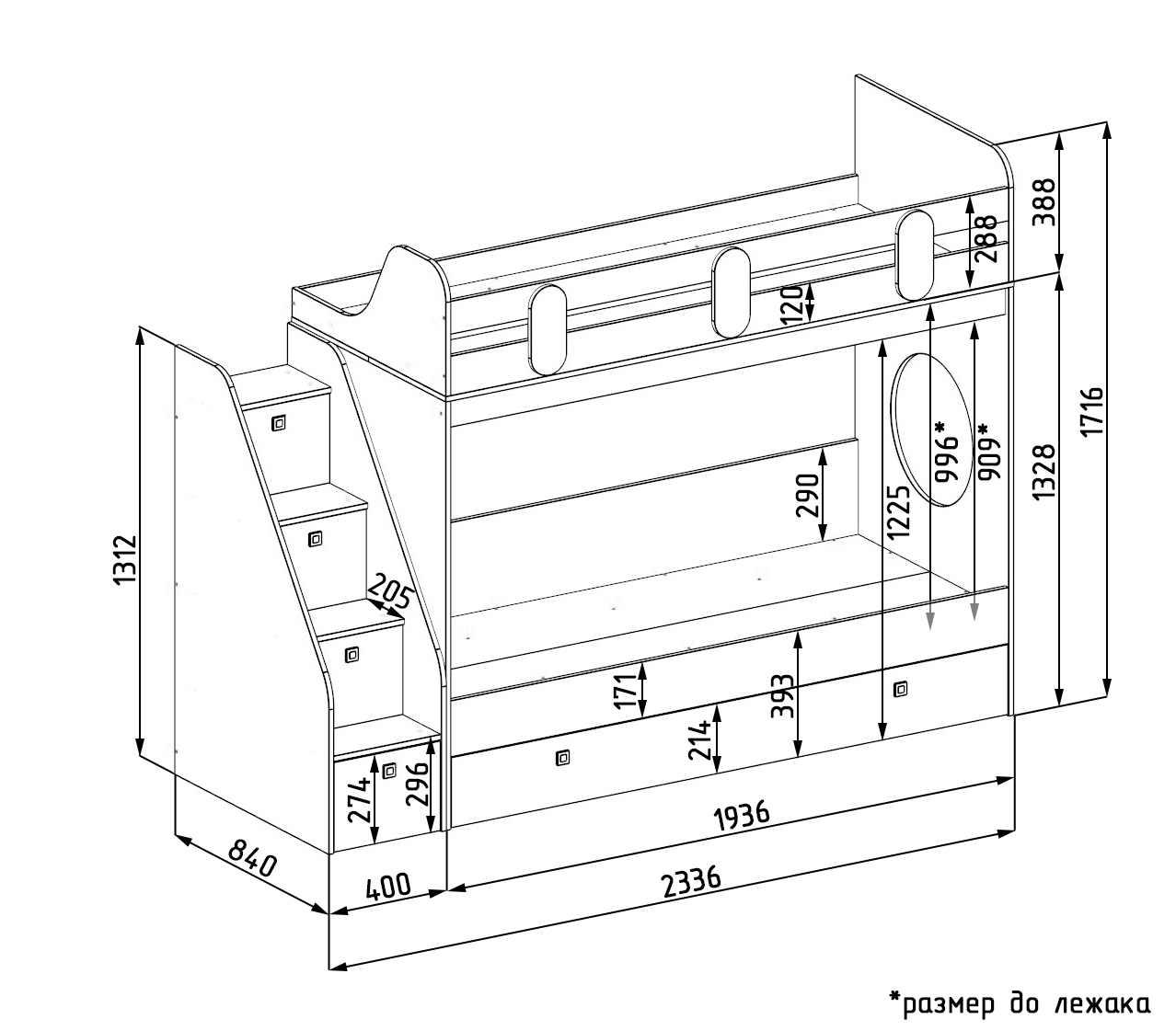 верхнее и нижнее спальное место 190 х 80 см - нагрузка на каждое спальное место до 150 кг