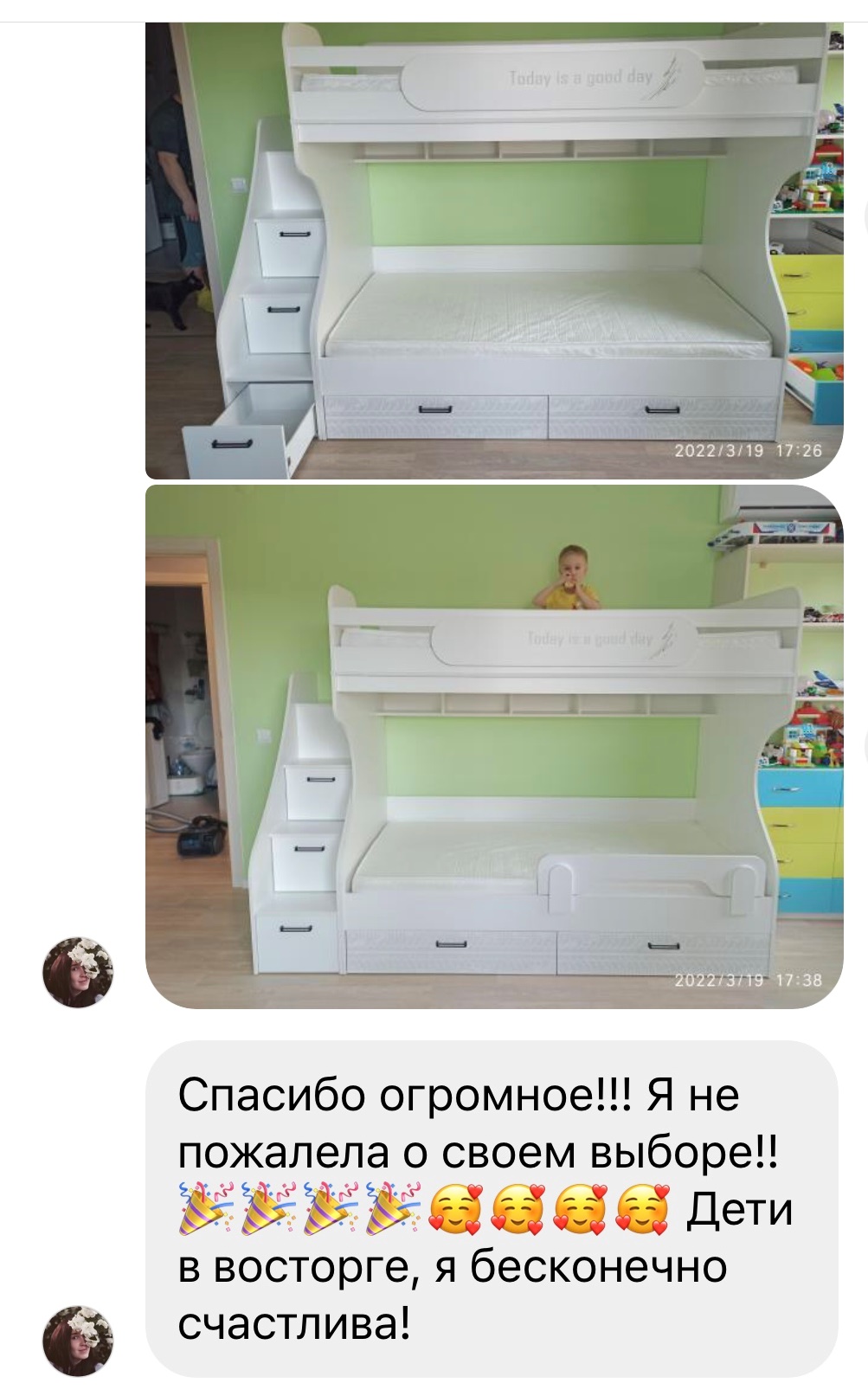 <comment>Шикарная кровать! Дети в восторге! Большие спальные места, очень качественные ящики! Спасибо огромное производителю! От всей души желаю вам процветания!