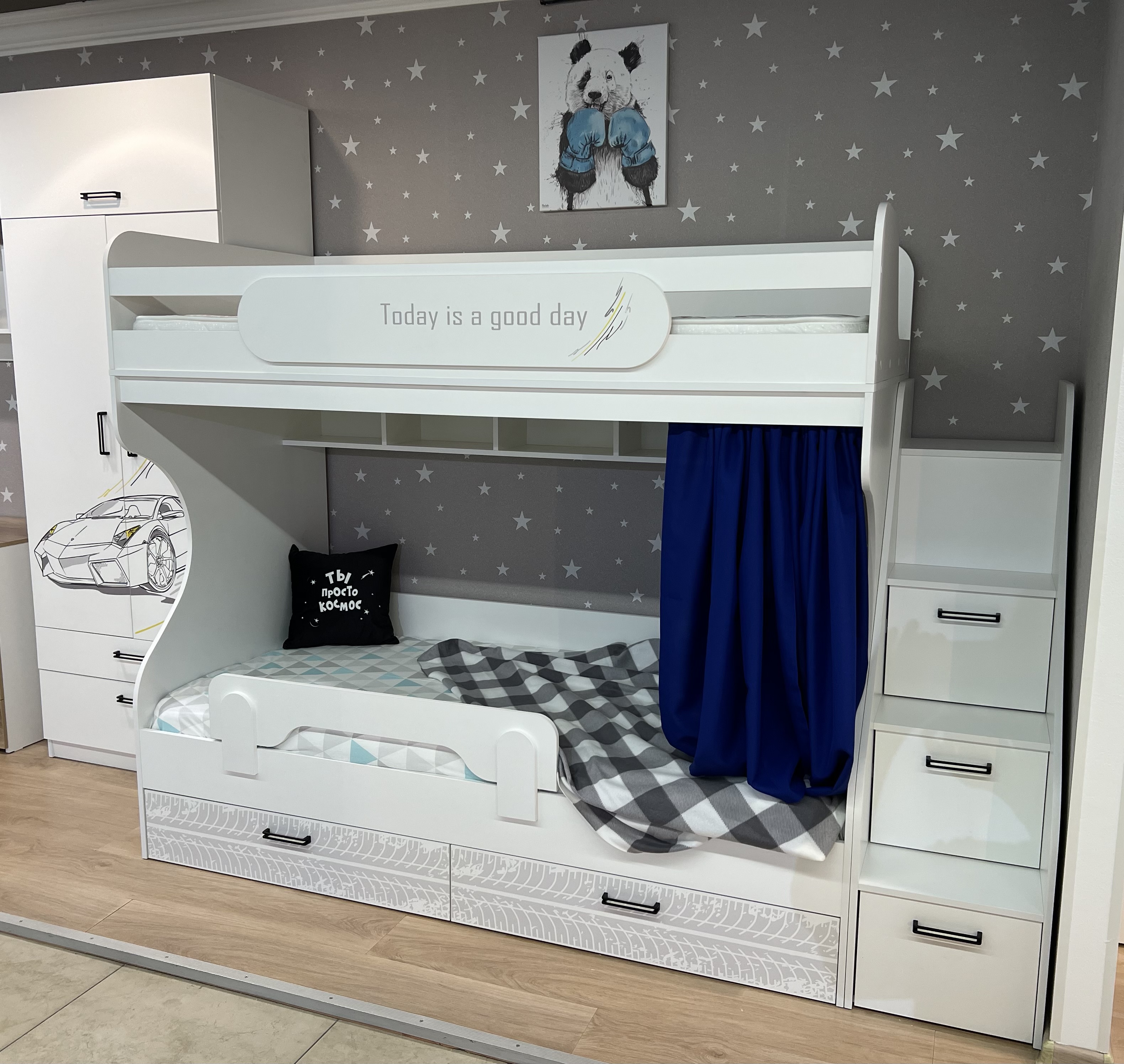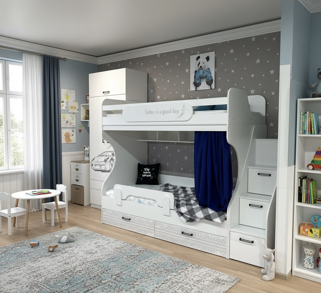 Высота кровати комфортна для сна - на втором этаже ребенку будет не душно спать.