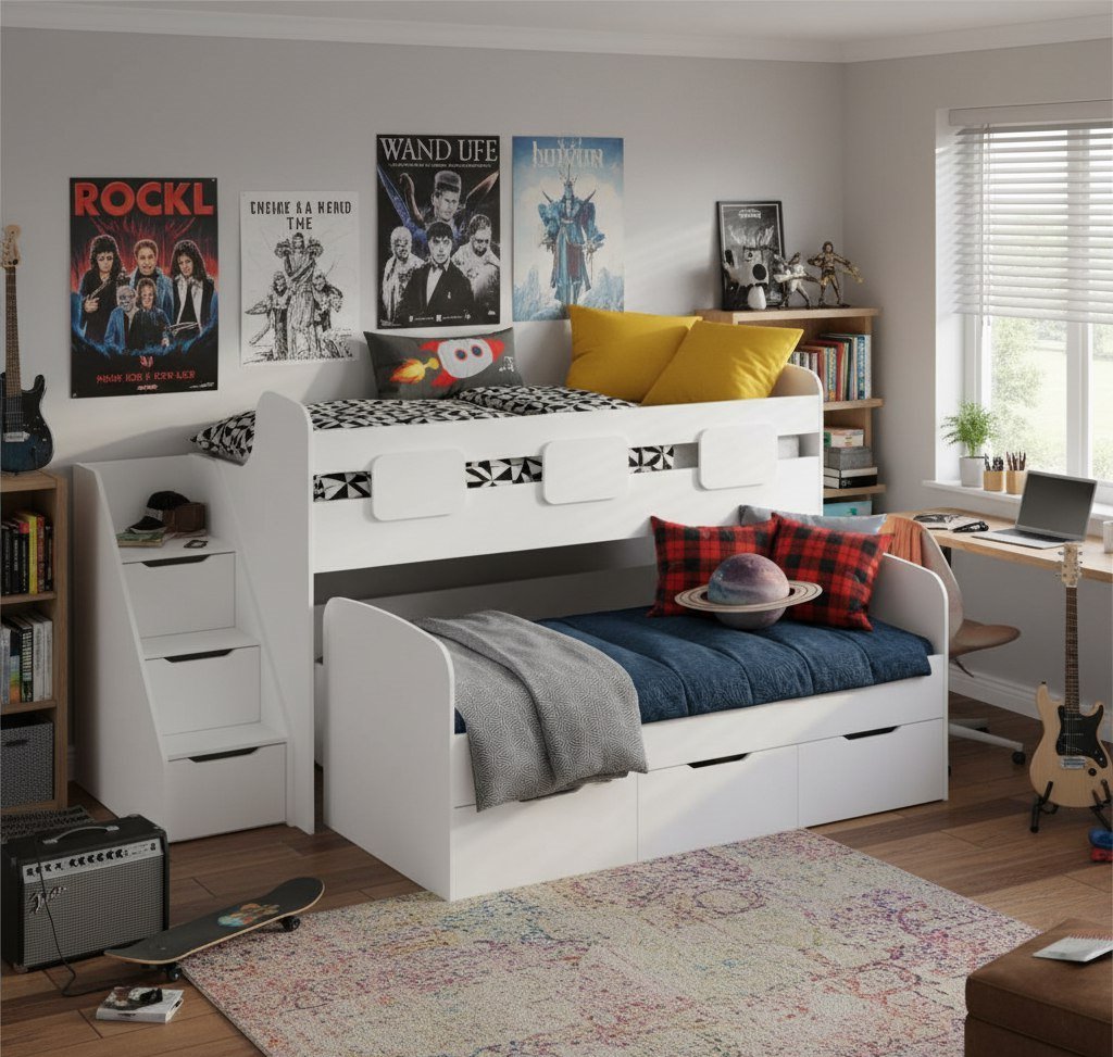 Эта модель кровати не только экономит пространство, но и делает каждый вечер уютным и комфортным.