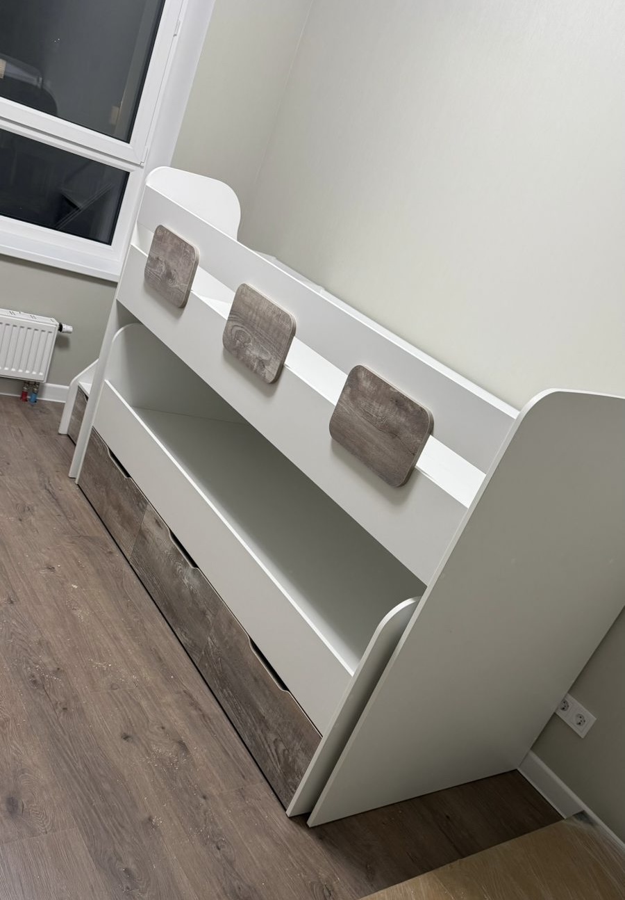 Вместо них - цельный и прочный настил из ЛДСП, который выдерживает сверхвысокую нагрузку и позволяет расположиться даже взрослому с ребенком.