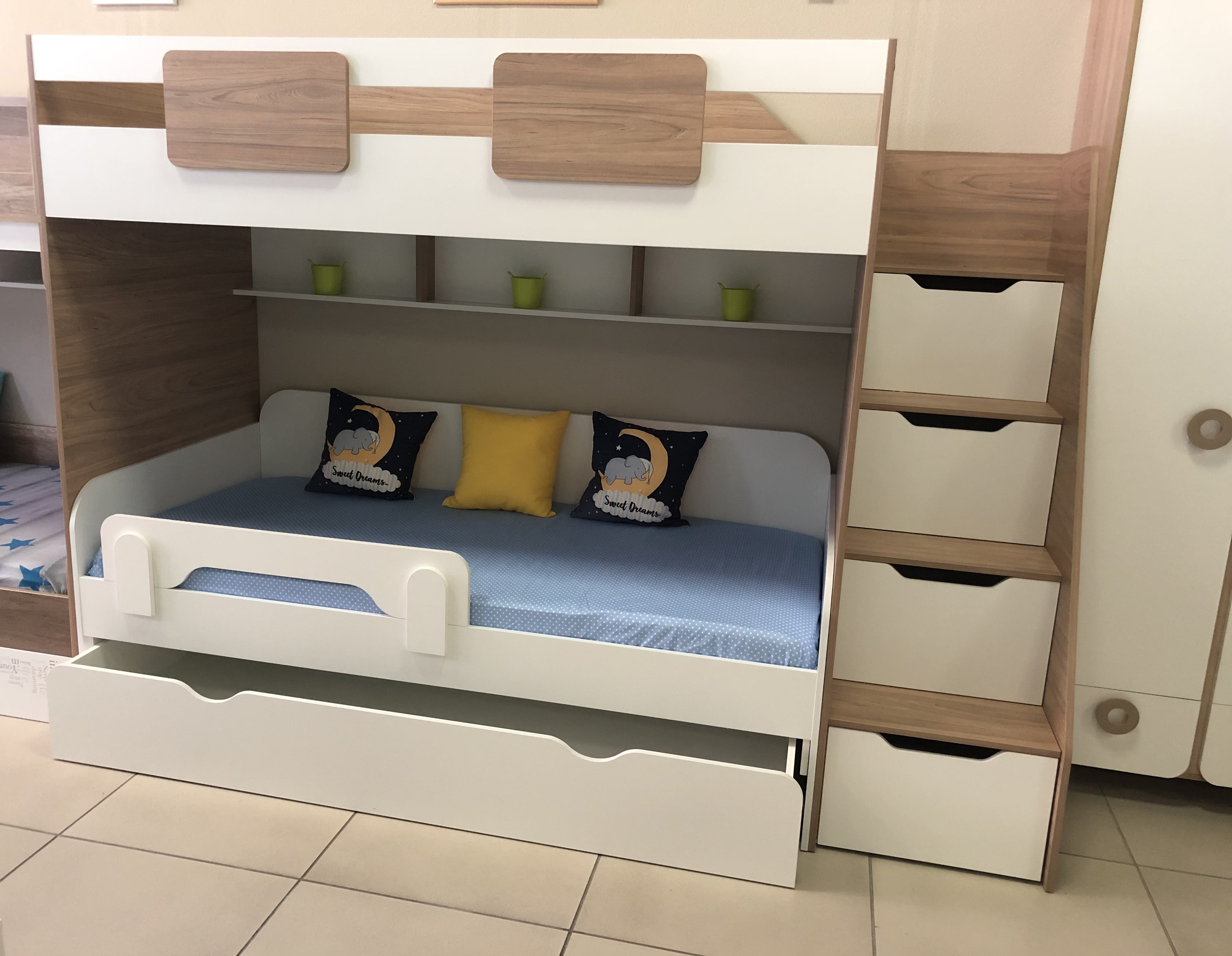 Высота матраца для нижней кровати не более 15 см.