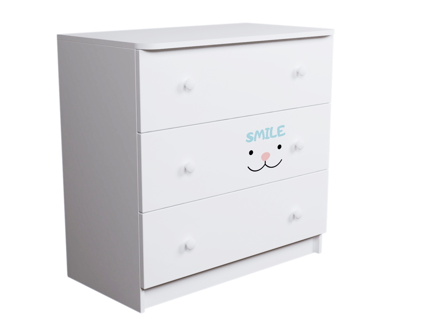 Торцы комода закруглены и обработаны ударопрочной кромкой ПВХ.