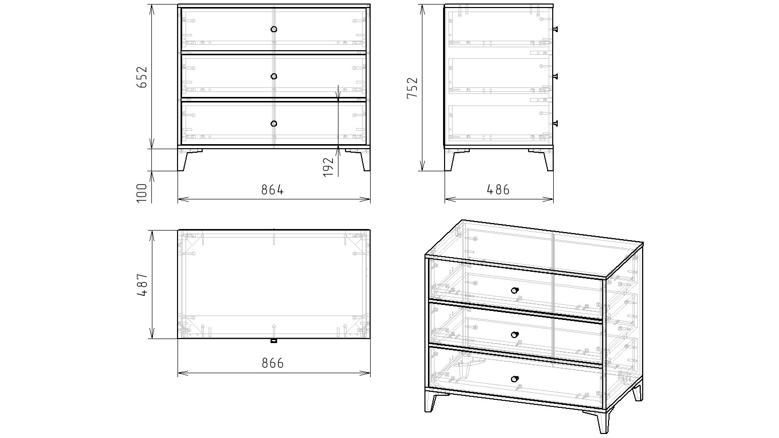 Габариты комода: ширина 866, глубина 487, высота 752 мм