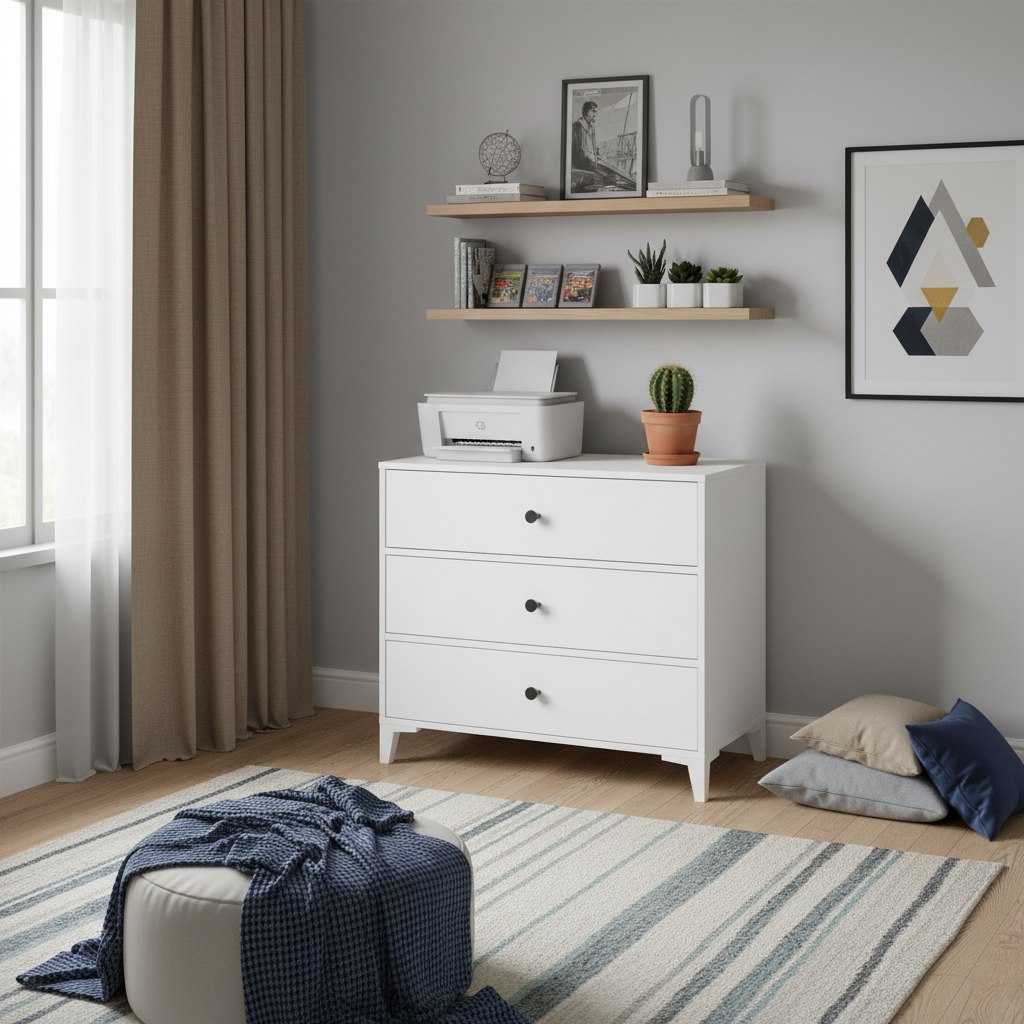 Мебель выполнена из сертифицированного, качественного, экологически чистого ЛДСП класса Е0,5 в белом цвете.