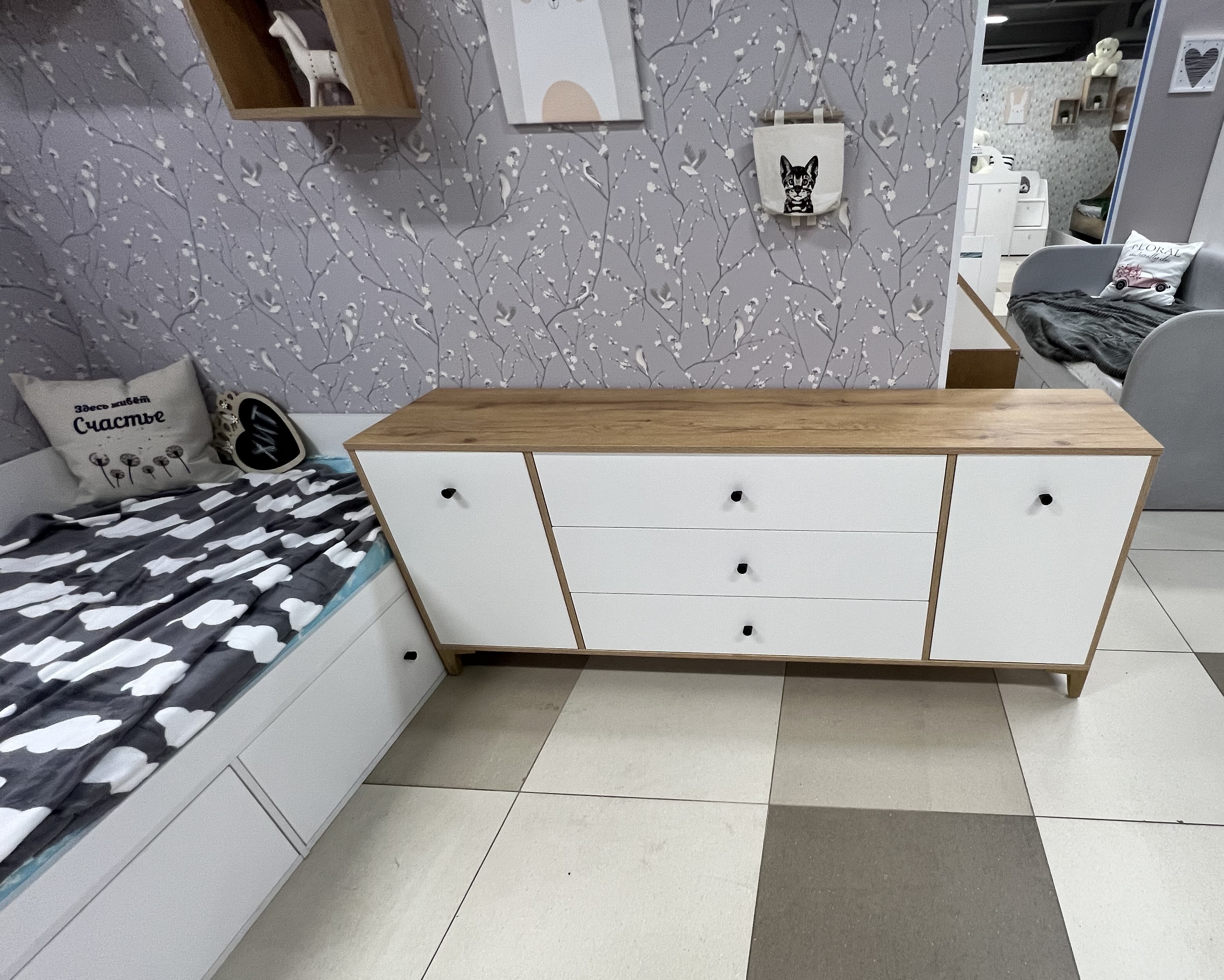 Мебель выполнена из сертифицированного, качественного, экологически чистого ЛДСП класса Е0,5 в сочетании цветов дуб золотистый с белым.