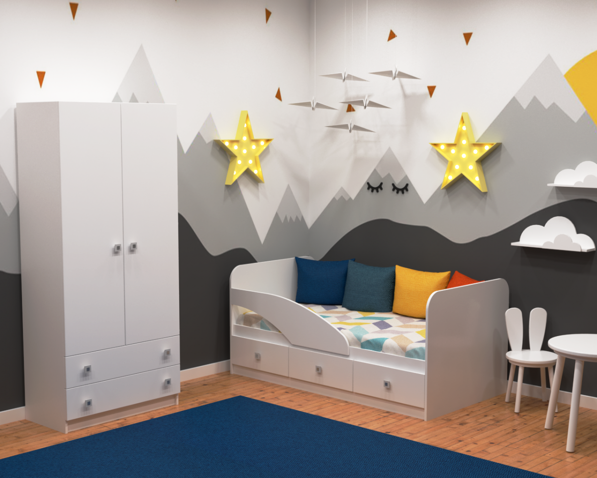 кровать с бортиком и ящиками + шкаф