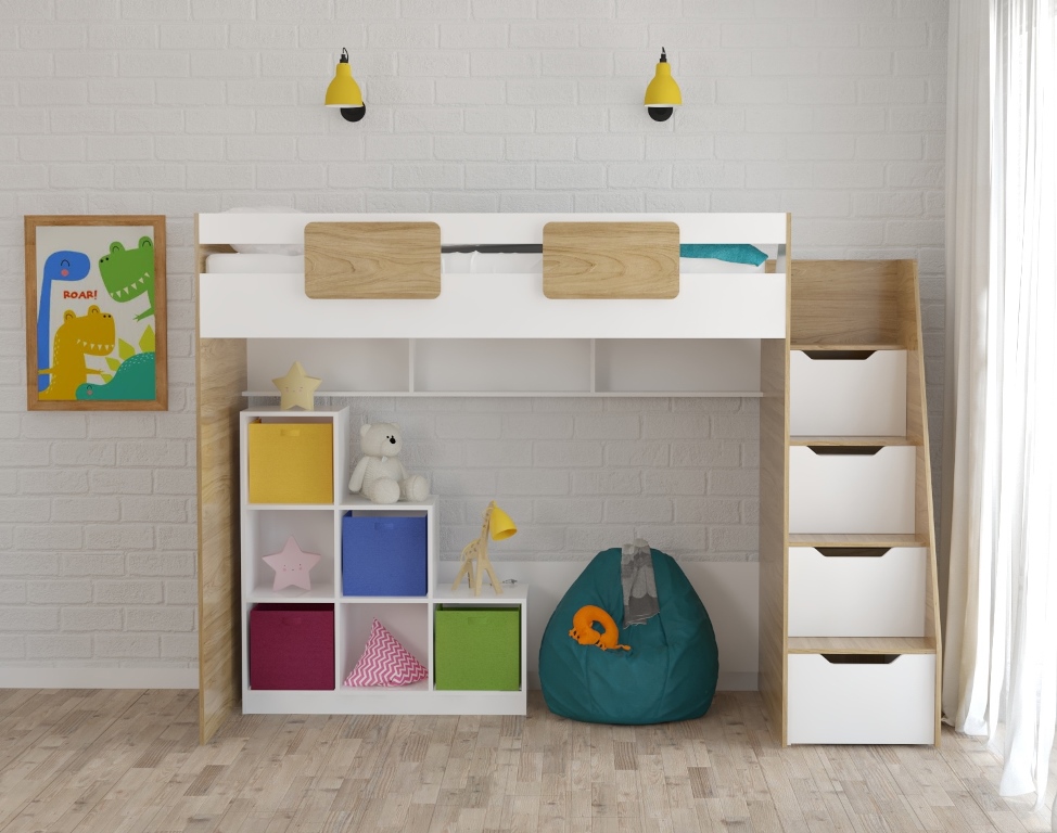 кровать-чердак коллекции Мозаика + стеллаж универсальный (правый/левый)