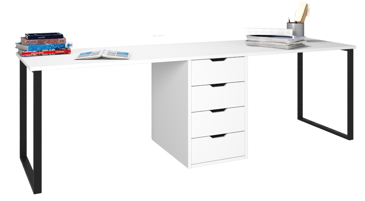 —Стол Дуэт 2400 мм (белый + опоры черные). Столешница 22 мм