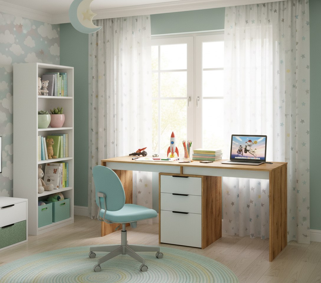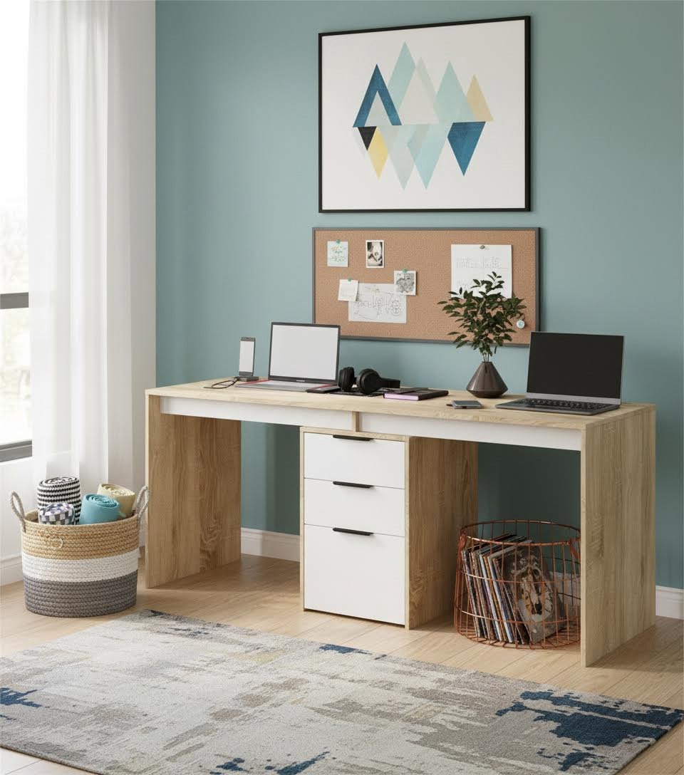 Стол письменный Тандем украсит современную детскую комнату и поможет организовать комфортный учебный процесс для двоих детей.