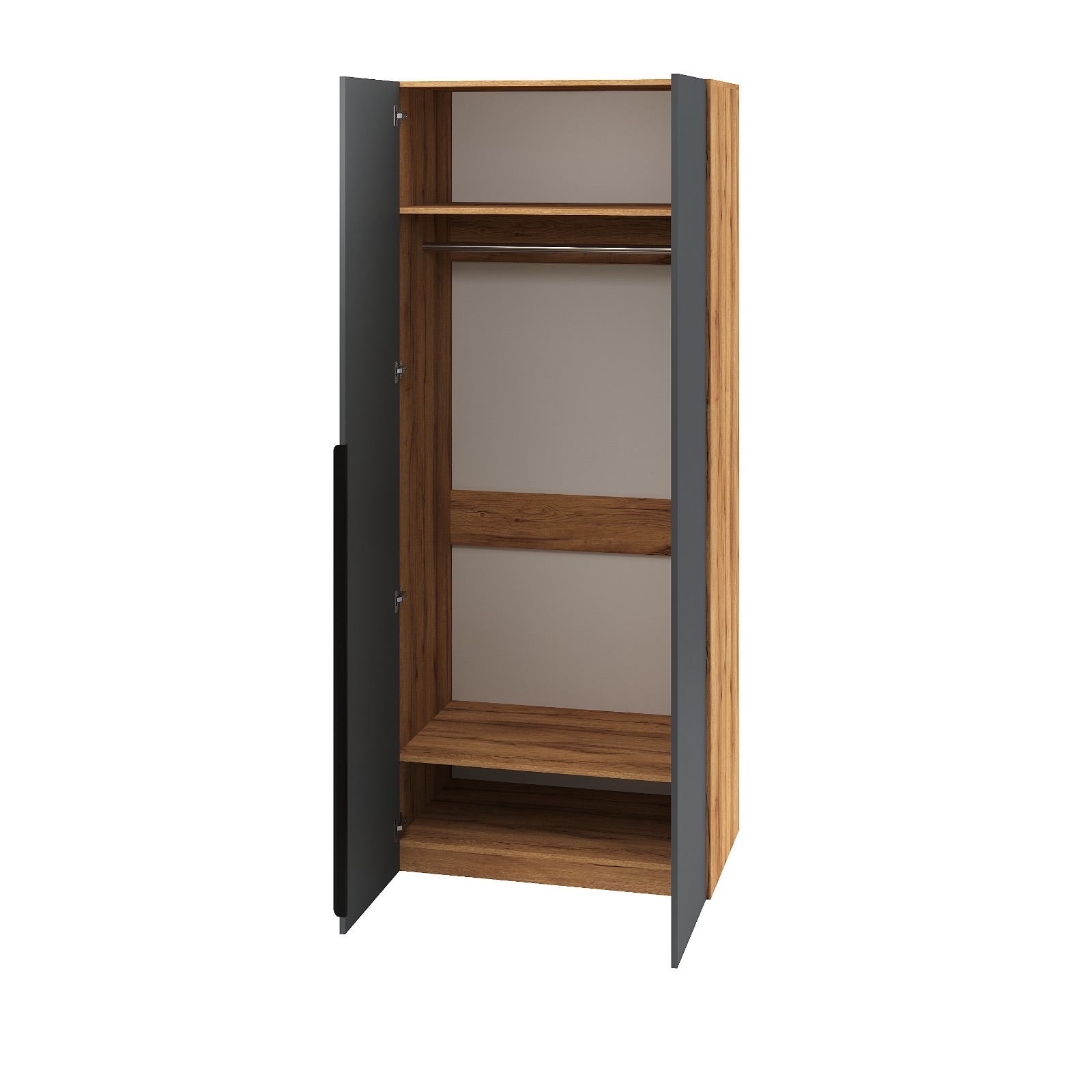 Двухстворчатый распашной шкаф коллекции мебели Брайт Графит - удобный и функциональный шкаф для хранения вещей.