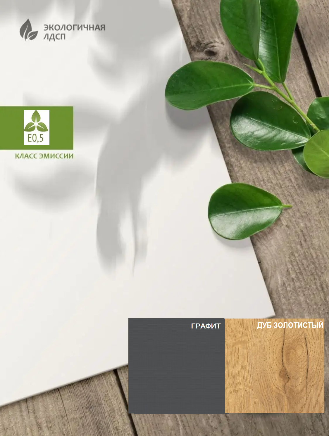 ЛДСП Е0,5. Толщина 16 мм. Доступна в цветах: корпус белый + фасады графит, корпус белый + фасады дуб золотистый, корпус дуб золотистый + фасады графит, полностью белый или полностью велюр |