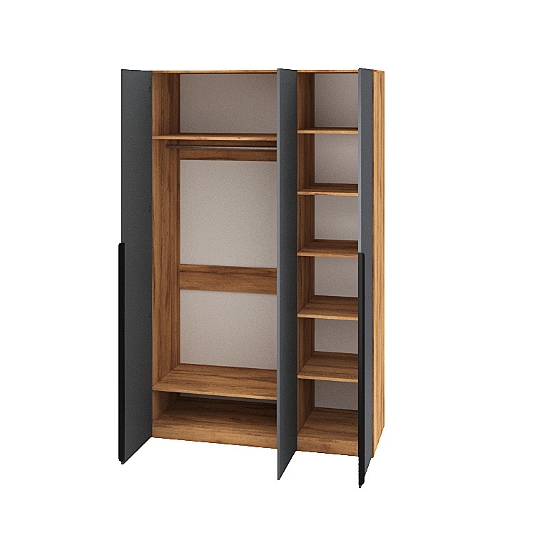 Трехдверный распашной шкаф коллекции мебели Брайт Графит - функциональное решение для хранения одежды, обуви и аксессуаров.