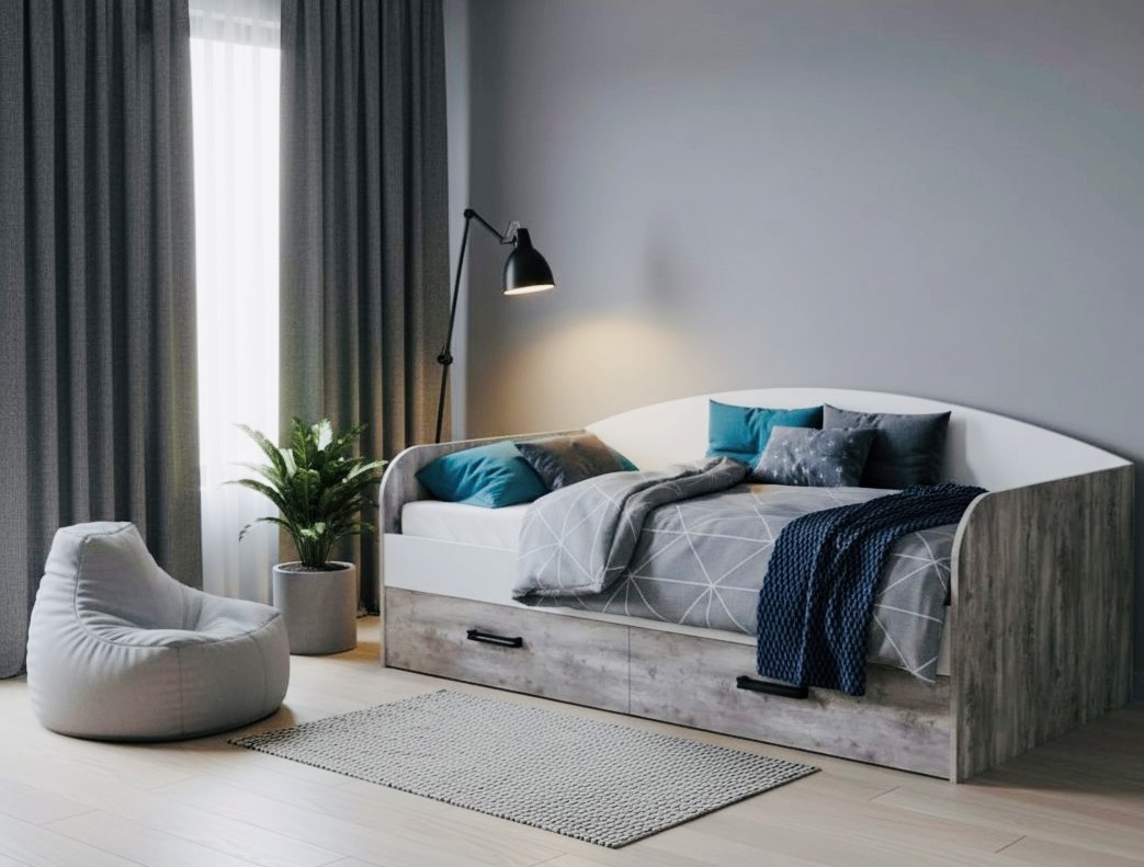 Данная модель кровати выполнена в современном дизайне, превосходно дополнит интерьер детской или молодежной комнаты.