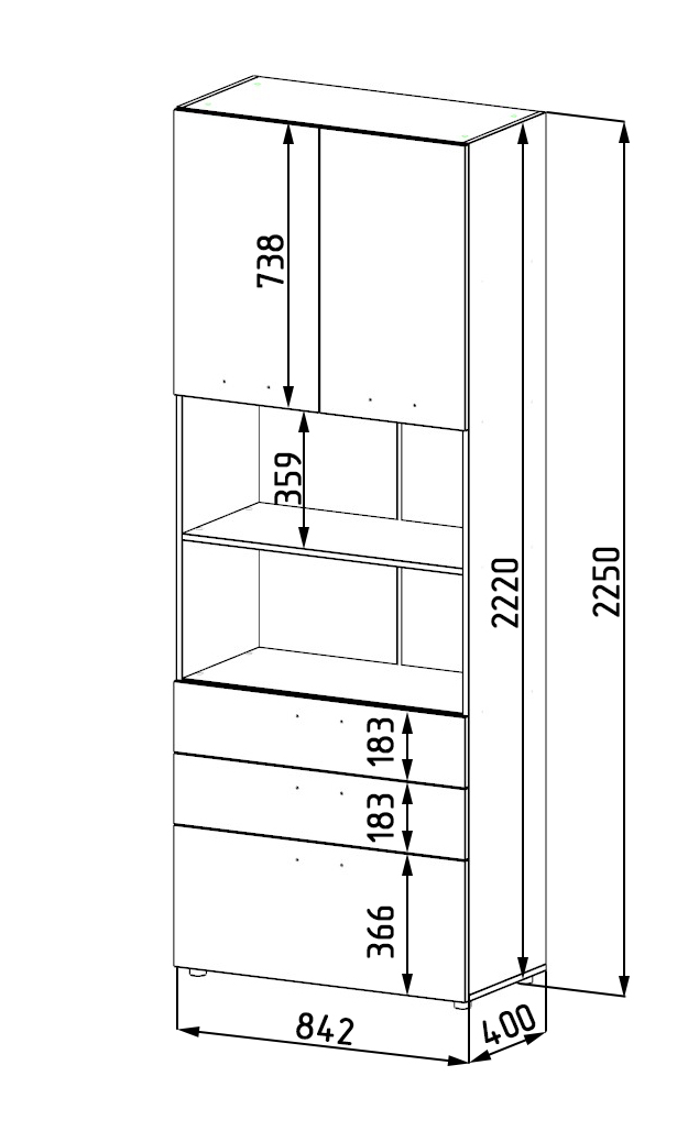 Габариты: высота 2250 х ширина 800 х глубина 420
