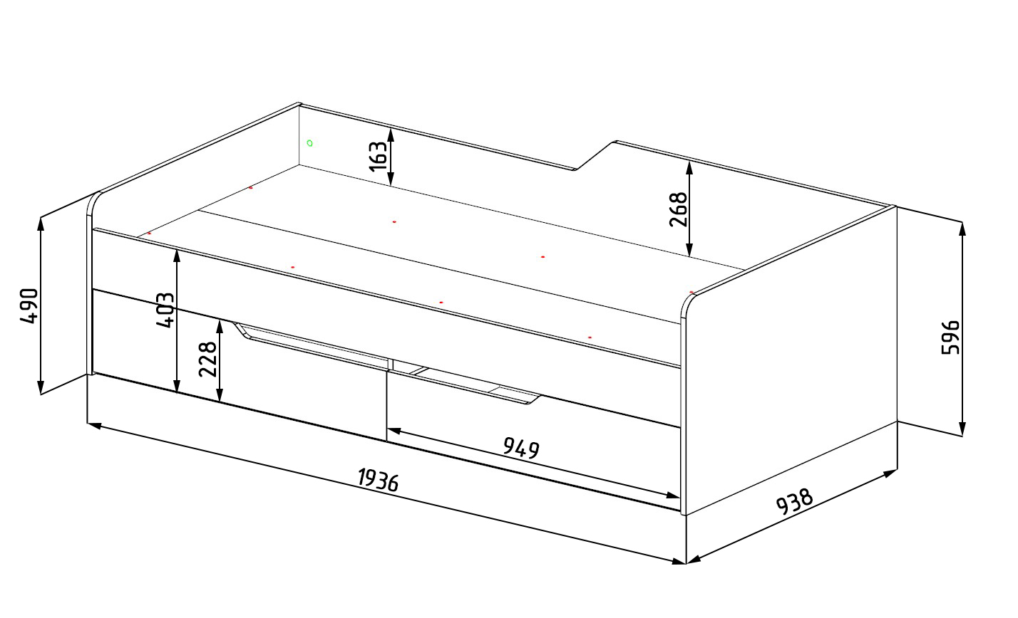 ширина 1936, глубина 938, высота 596 мм