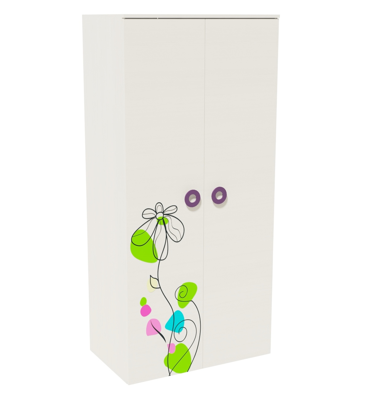 Шкаф коллекции "Цветы" выполнен из сертифицированного, качественного, экологически чистого ЛДСП класса Е0,5 в белом цвете.