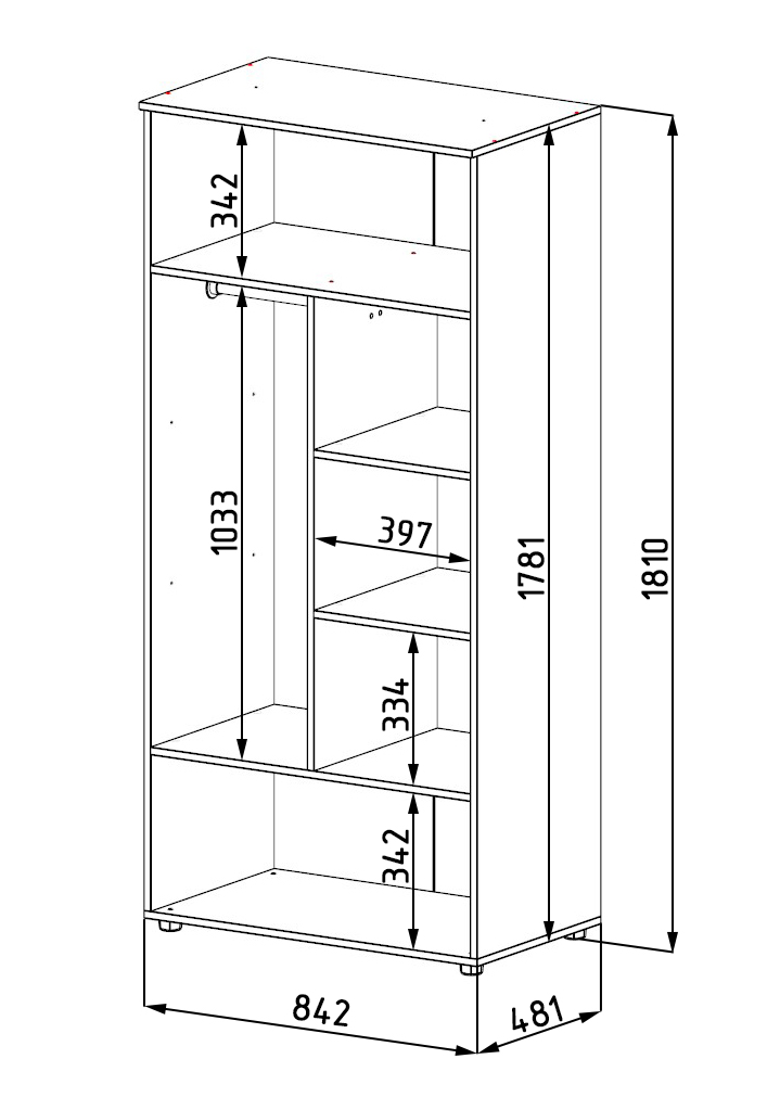 Габариты шкафа: высота 1808 х глубина 500 х ширина 842 мм