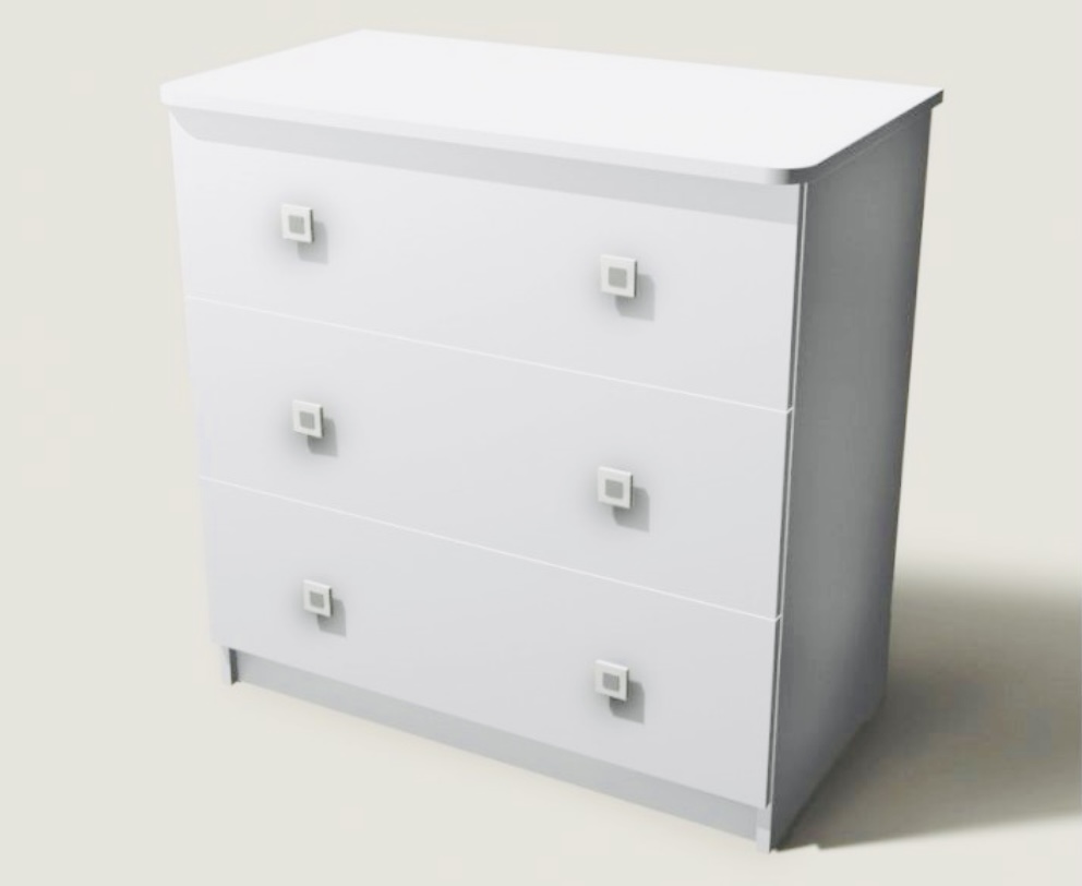 Торцы комода закруглены и обработаны ударопрочной кромкой ПВХ.