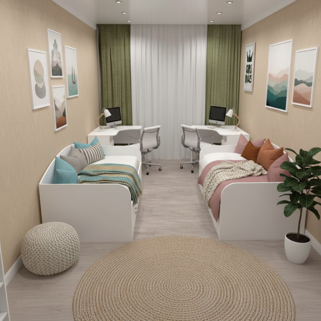 Комплект мебели коллекции Умка: кровати (2 шт) + столы угловые (2 шт) + полки (2 шт)