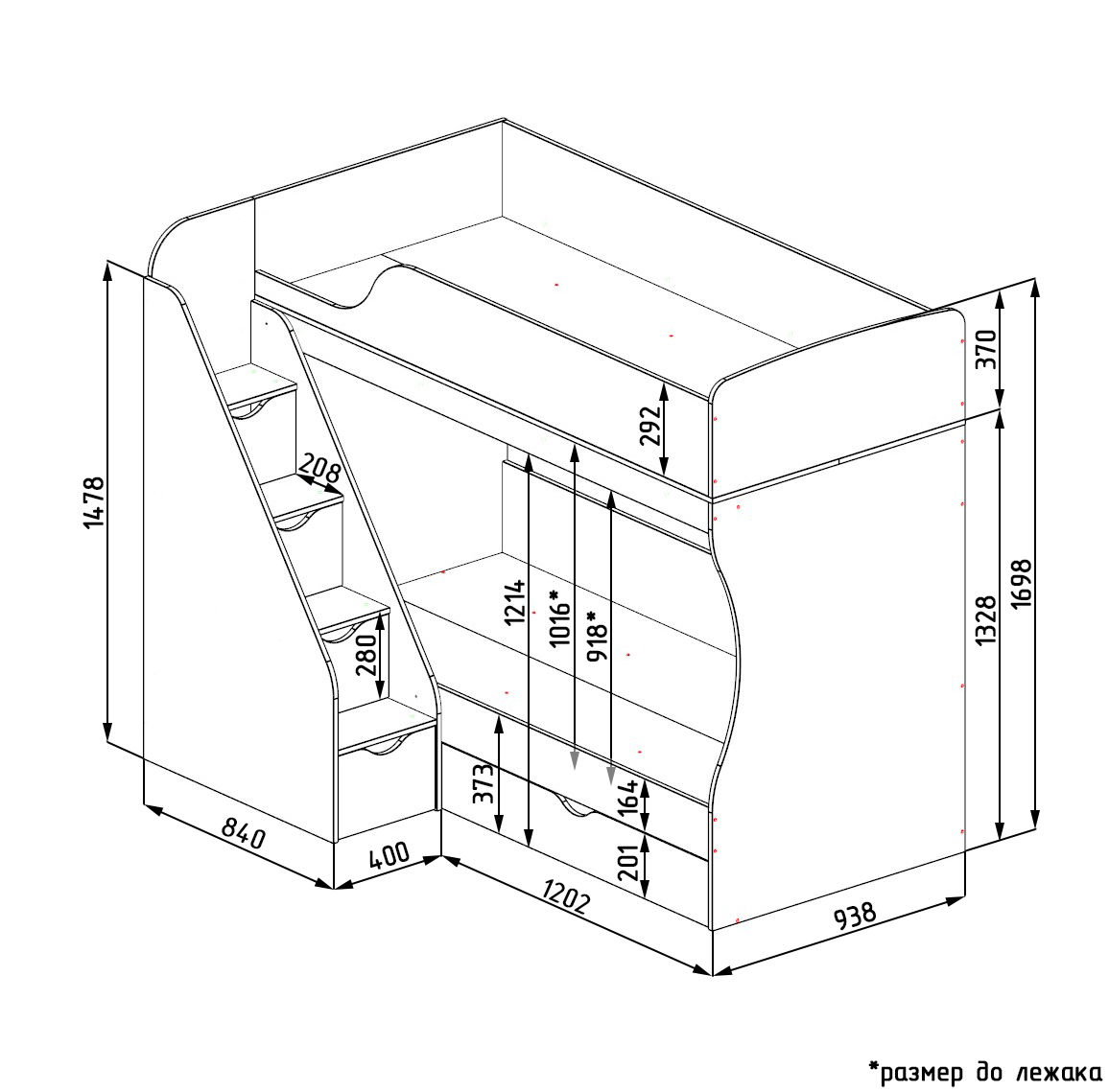 * Дополнительно к нижней кровати можно приобрести съемный бортик-ограничитель