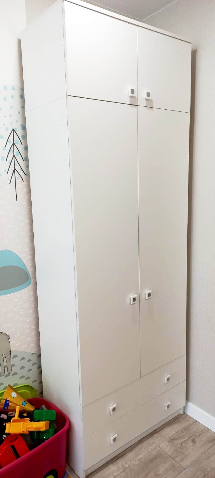 <comment>Заказывали ребёнку шкаф и кровать белого цвета. Оттенок цвета очень приятный, материал супер, ручки шкафа удобные и крепкие) отдельное спасибо доставке и мастеру по сборке, за оперативность. </comment>