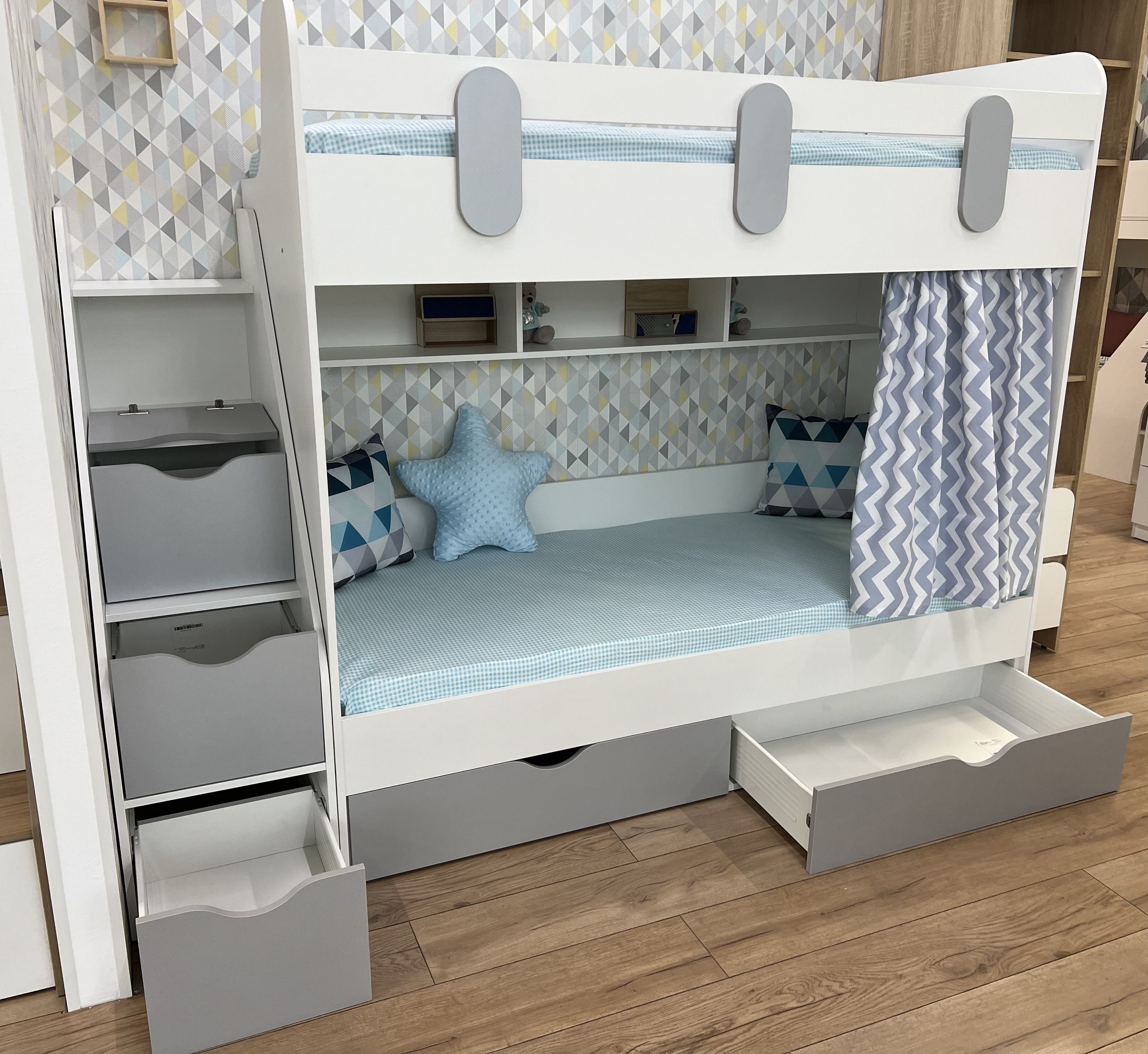 Двухъярусные кроватиТрехъярусные кровати Односпальные кроватиКровати-чердакиЧетырехъярусные кровати Шкафы, стеллажи, пеналыКомпьютерные и письменные столыНавесные-настенные полкиКомодыКомплекты мебелиМатрасыМебель для родителей