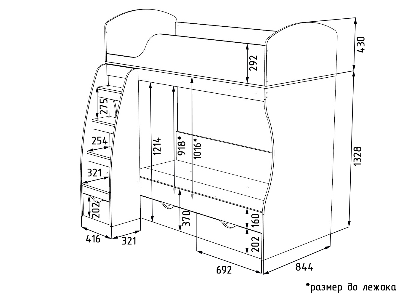Габариты кровати: ширина 1844 х высота 1758 х глубина вместе с лестницей 1165 мм