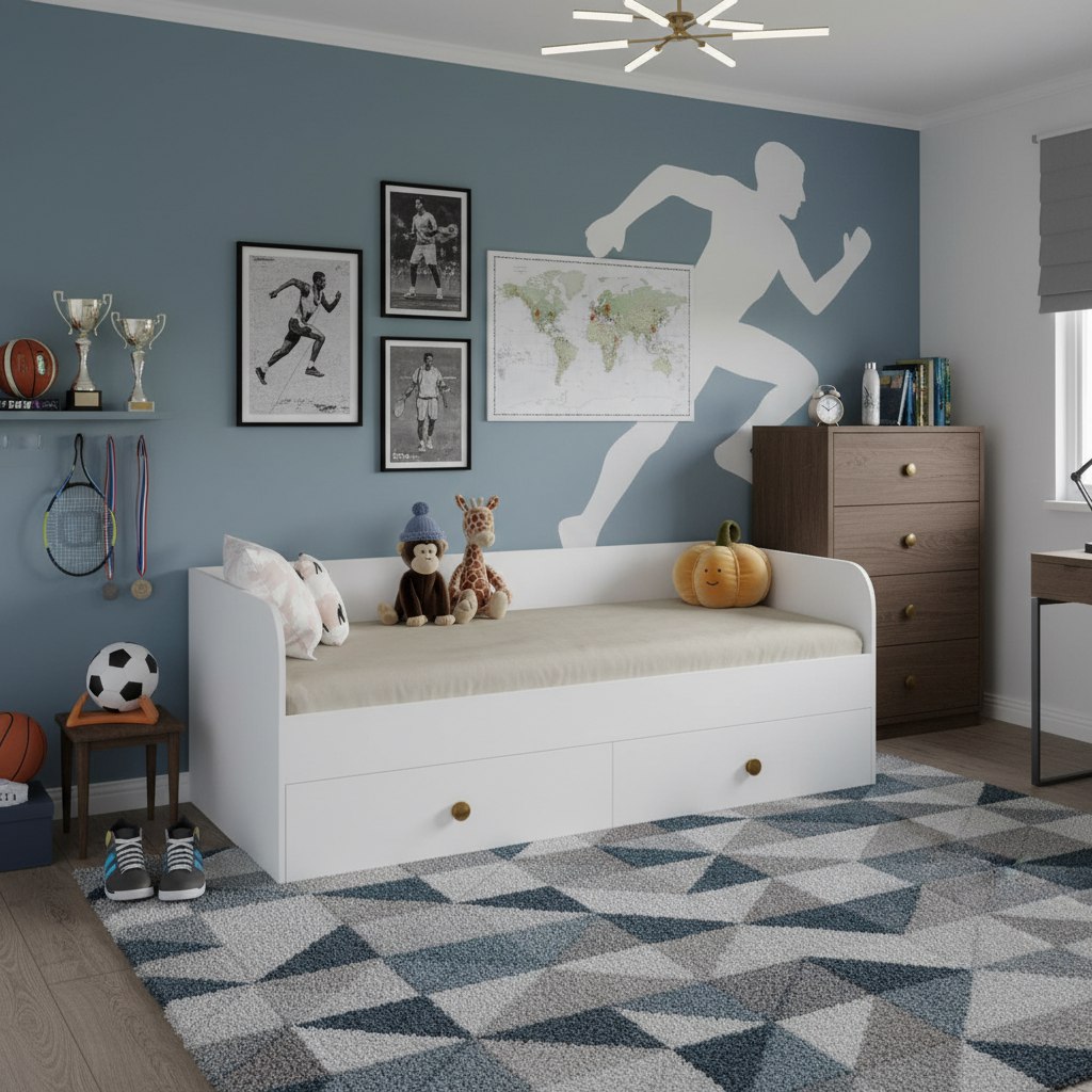 Эта модель кровати в белом цвете – прекрасный вариант обустройства детской комнаты.