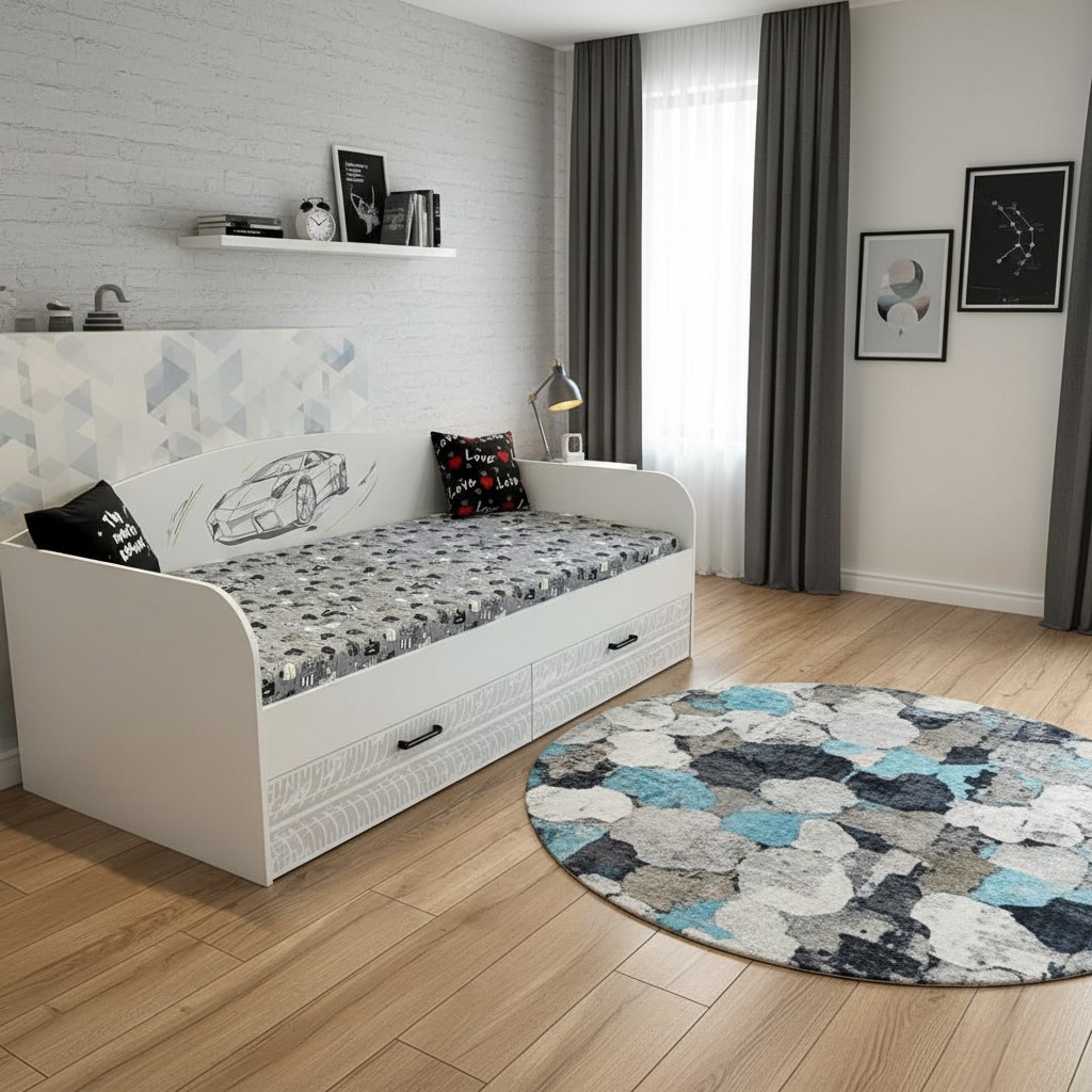 Мебель выполнена из сертифицированного, качественного, экологически чистого ЛДСП класса Е0,5 в белом цвете с дизайнерским принтом.