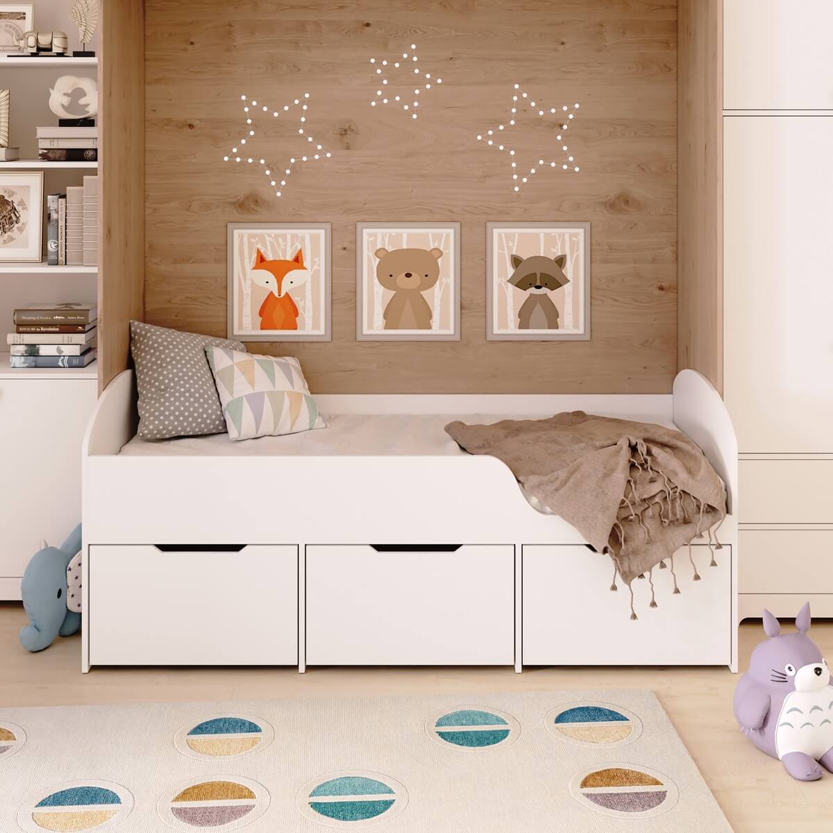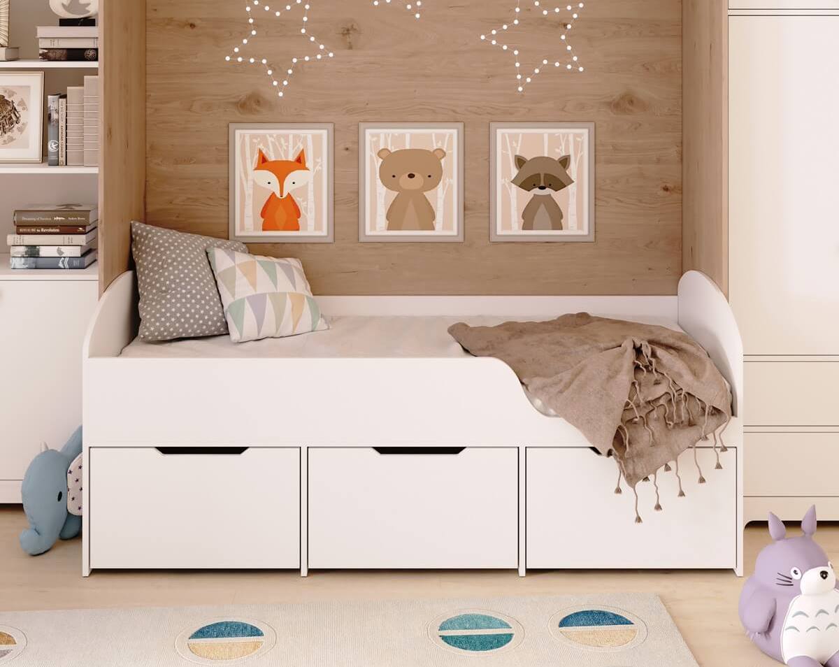 Три вместительных выдвижных ящика помогут всегда хранить личные вещи и игрушки ребенка в собранном виде.