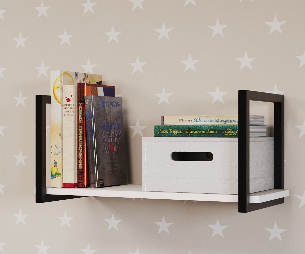 Открытая трендовая мини-полка идеально подходит для размещения над письменным столом школьника для хранения книг и учебников.