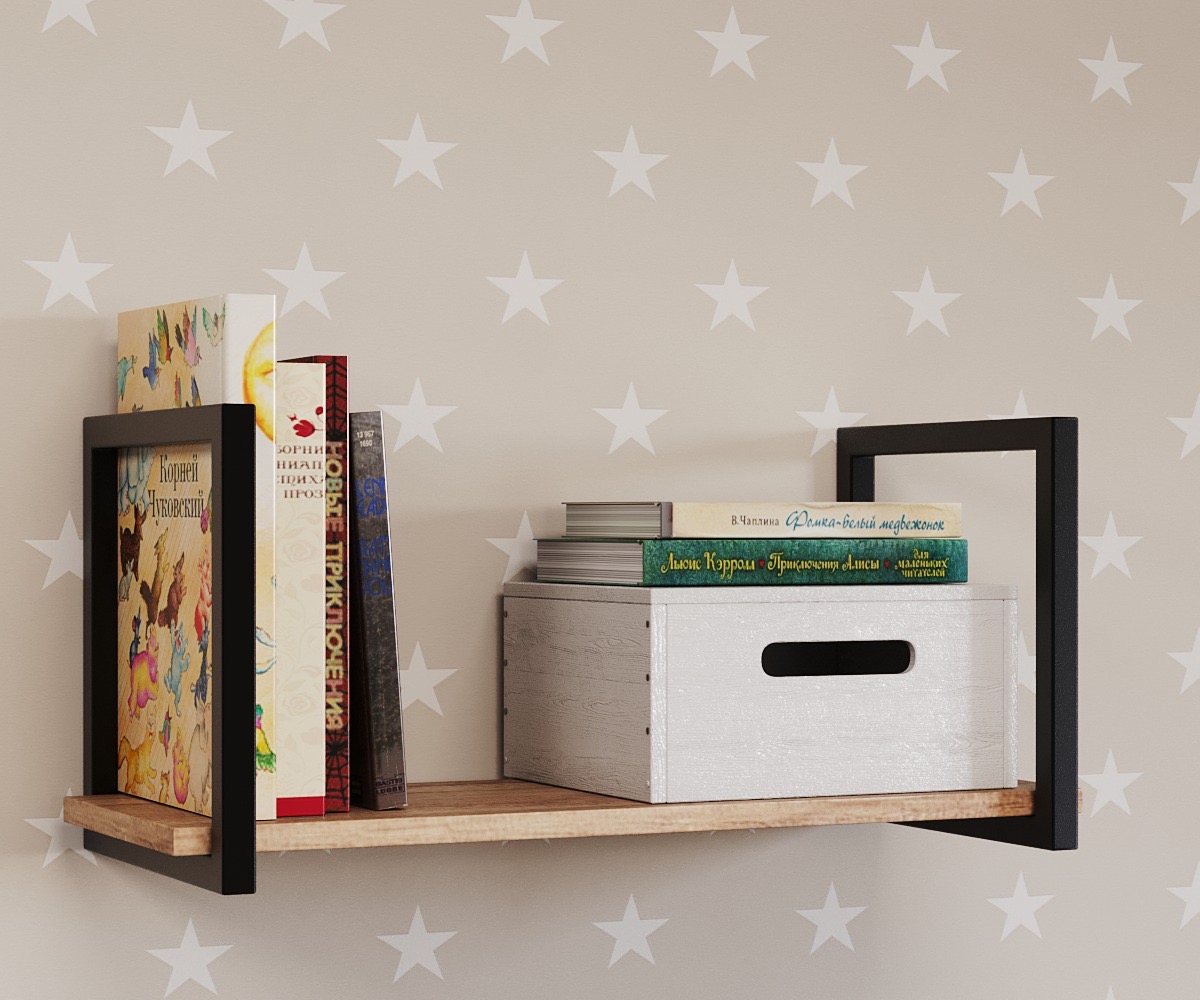 Открытая трендовая мини-полка идеально подходит для размещения над письменным столом школьника для хранения книг и учебников.