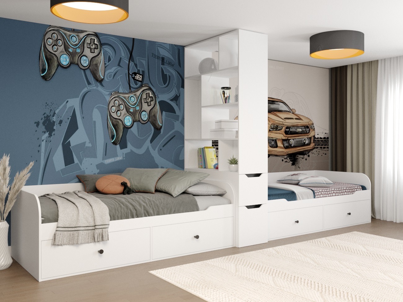 Комплект Норд для 2 детей с зонированием: кровати 190х90 + стеллаж