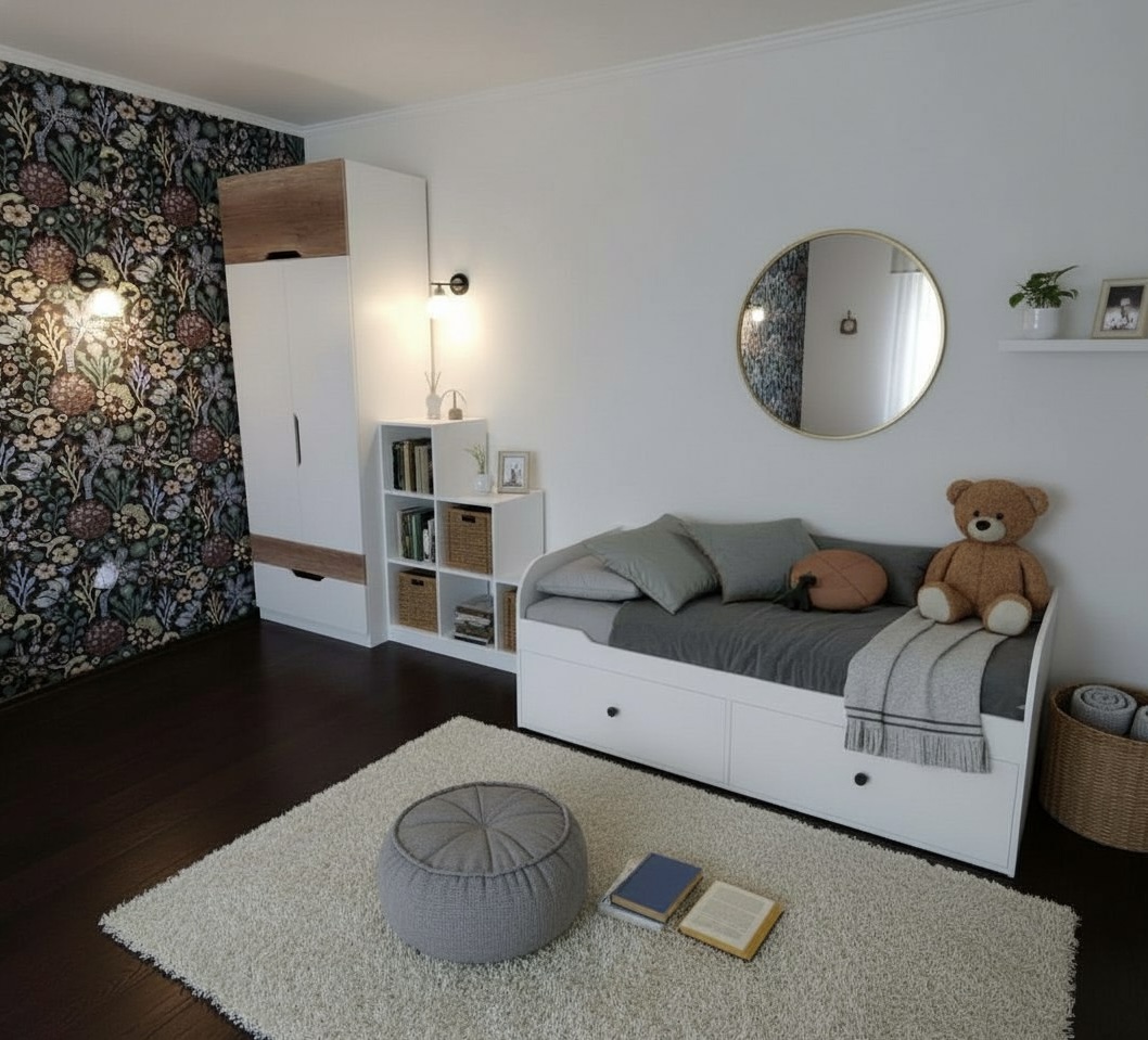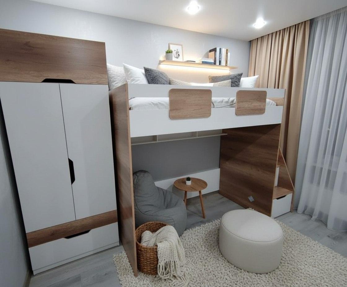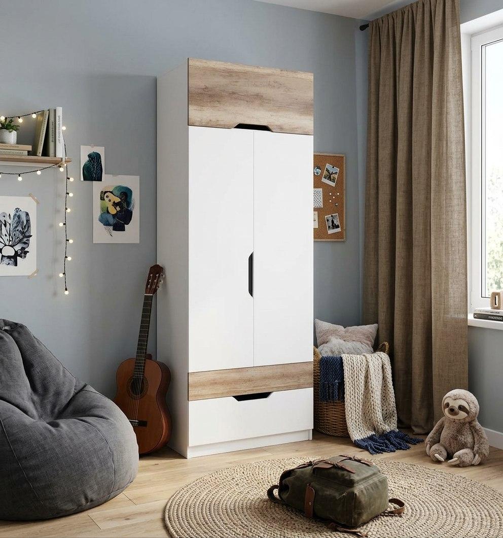 Идеально вписывается в детскую комнату, шкаф очень практичный и вместительный, по своим габаритам отлично подходит и для небольших комнат.