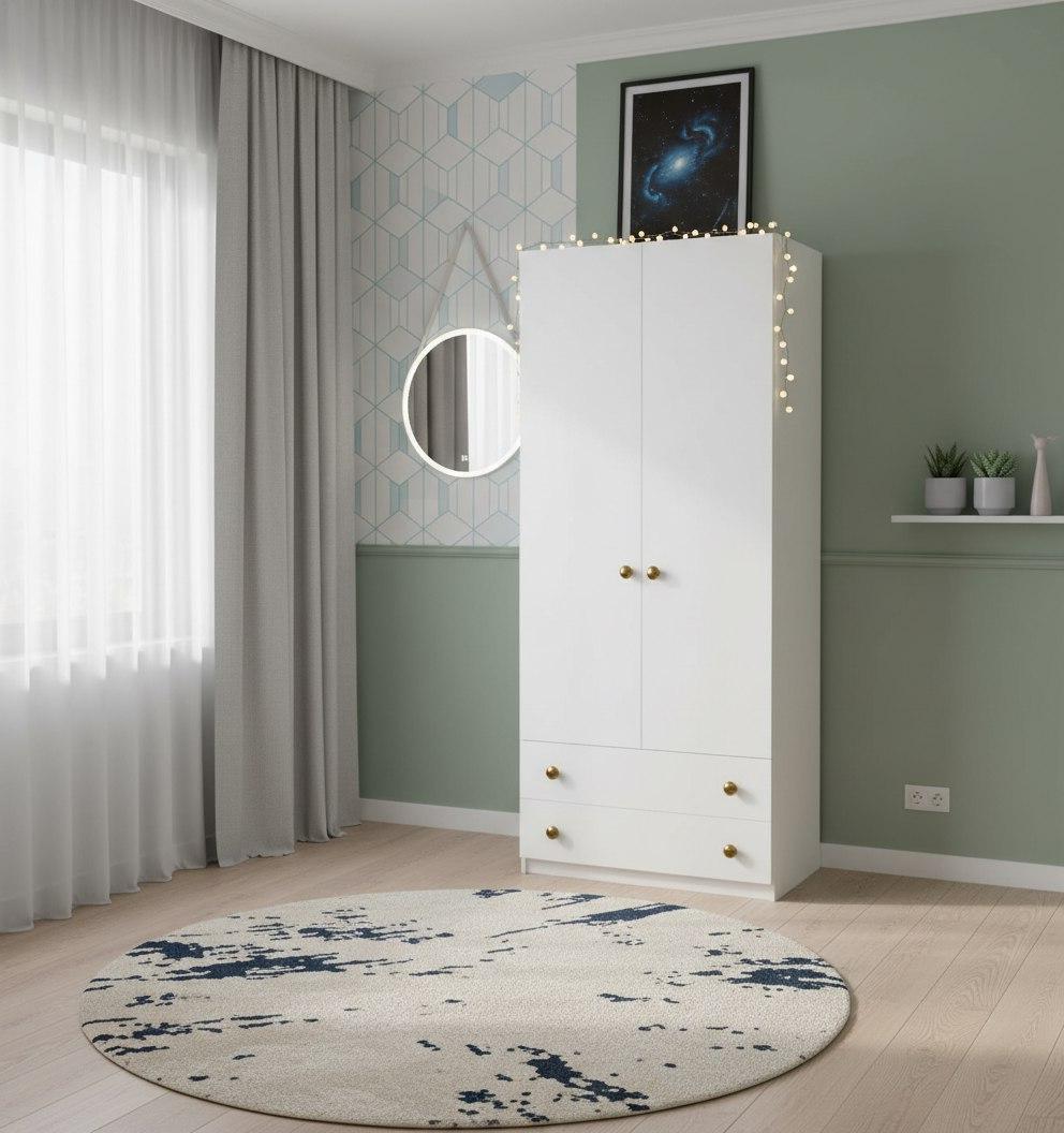 Шкаф оборудован двумя распашными дверями, двумя выдвижными ящиками для хранения мелких вещей.