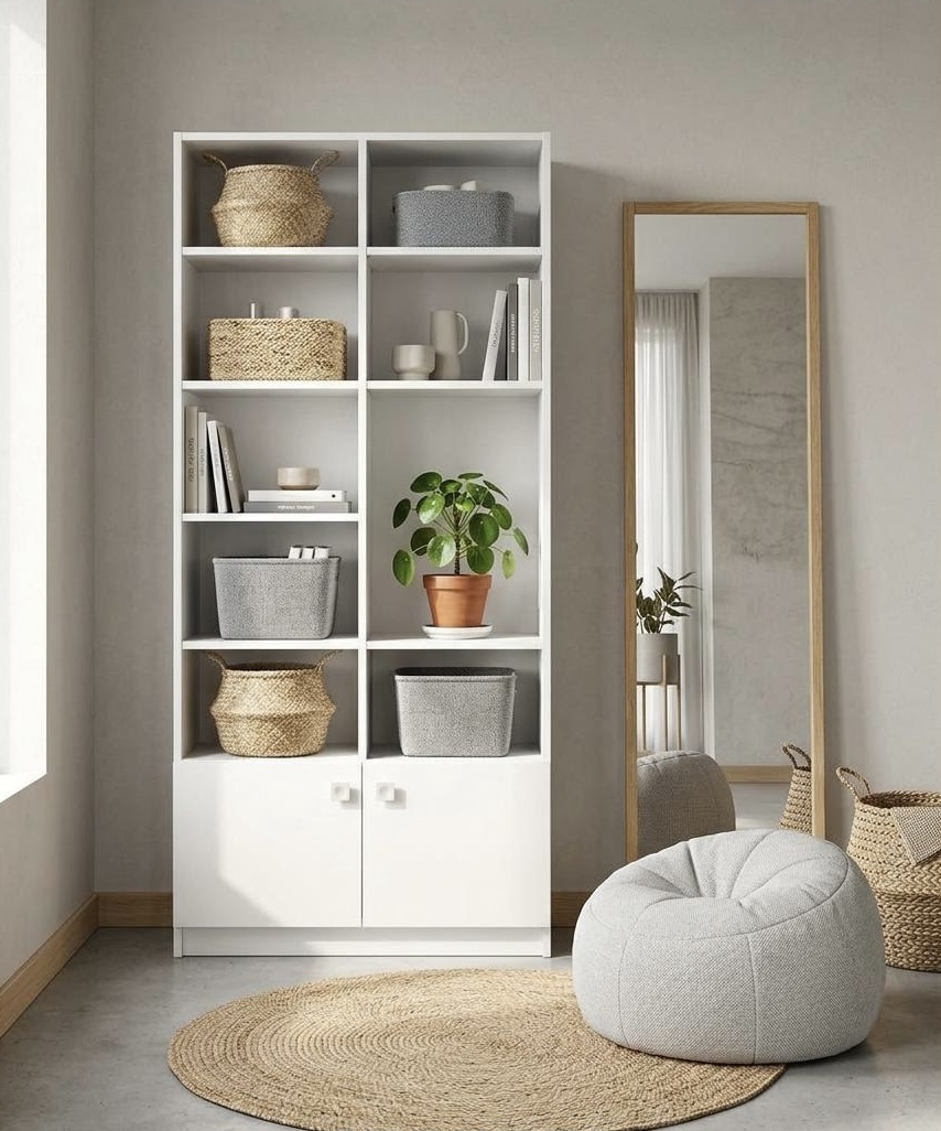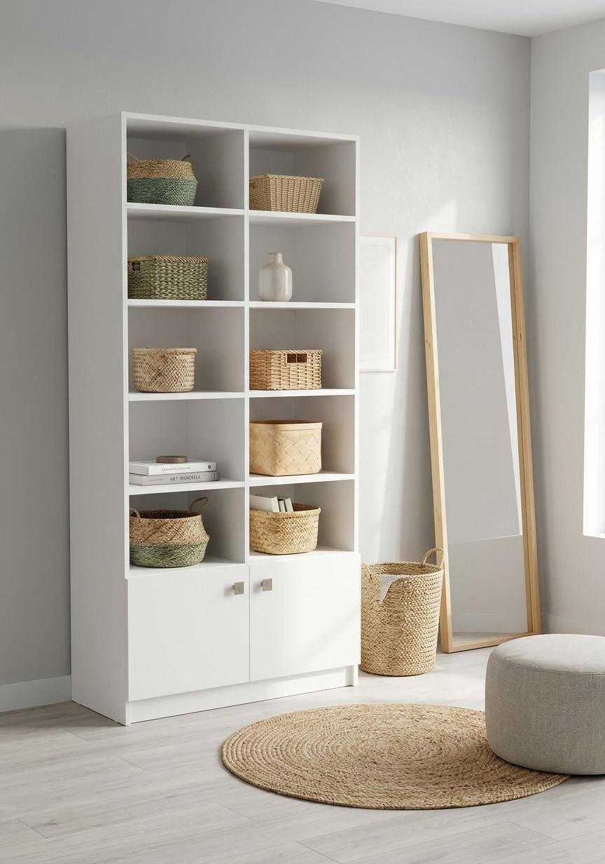 Вместительный стеллаж позволит разместить множество полезных для ребенка вещей.