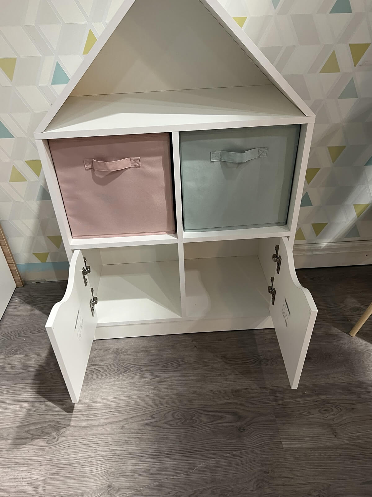 Стеллаж в виде домика - оригинальное и практичное дополнение в интерьере детской комнаты.