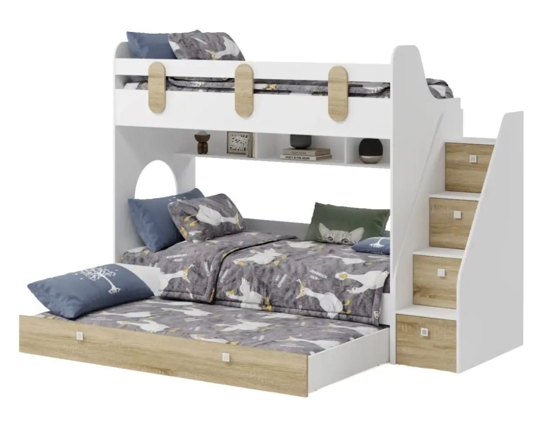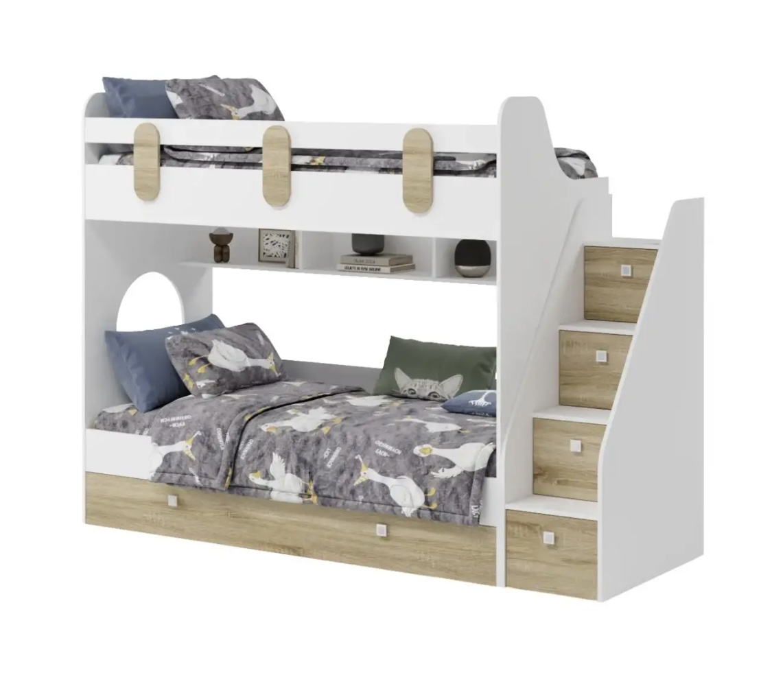 Вместо них - цельный и прочный настил из ЛДСП, который выдерживает сверхвысокую нагрузку и позволяет расположиться даже взрослому с ребенком.