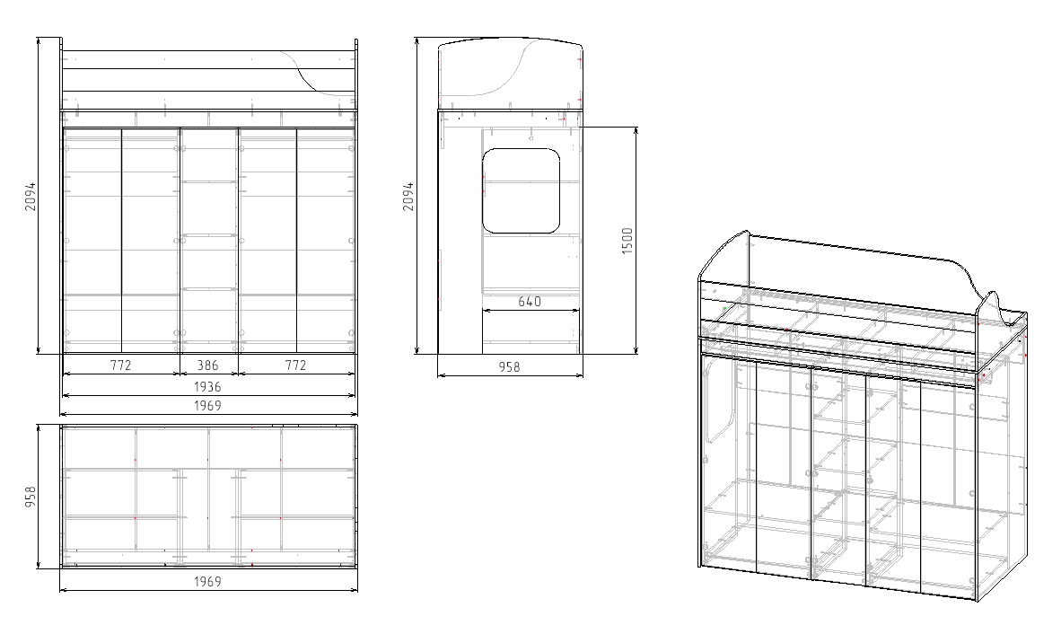 Габариты кровати: ширина 4337, высота 2098, глубина 958 мм